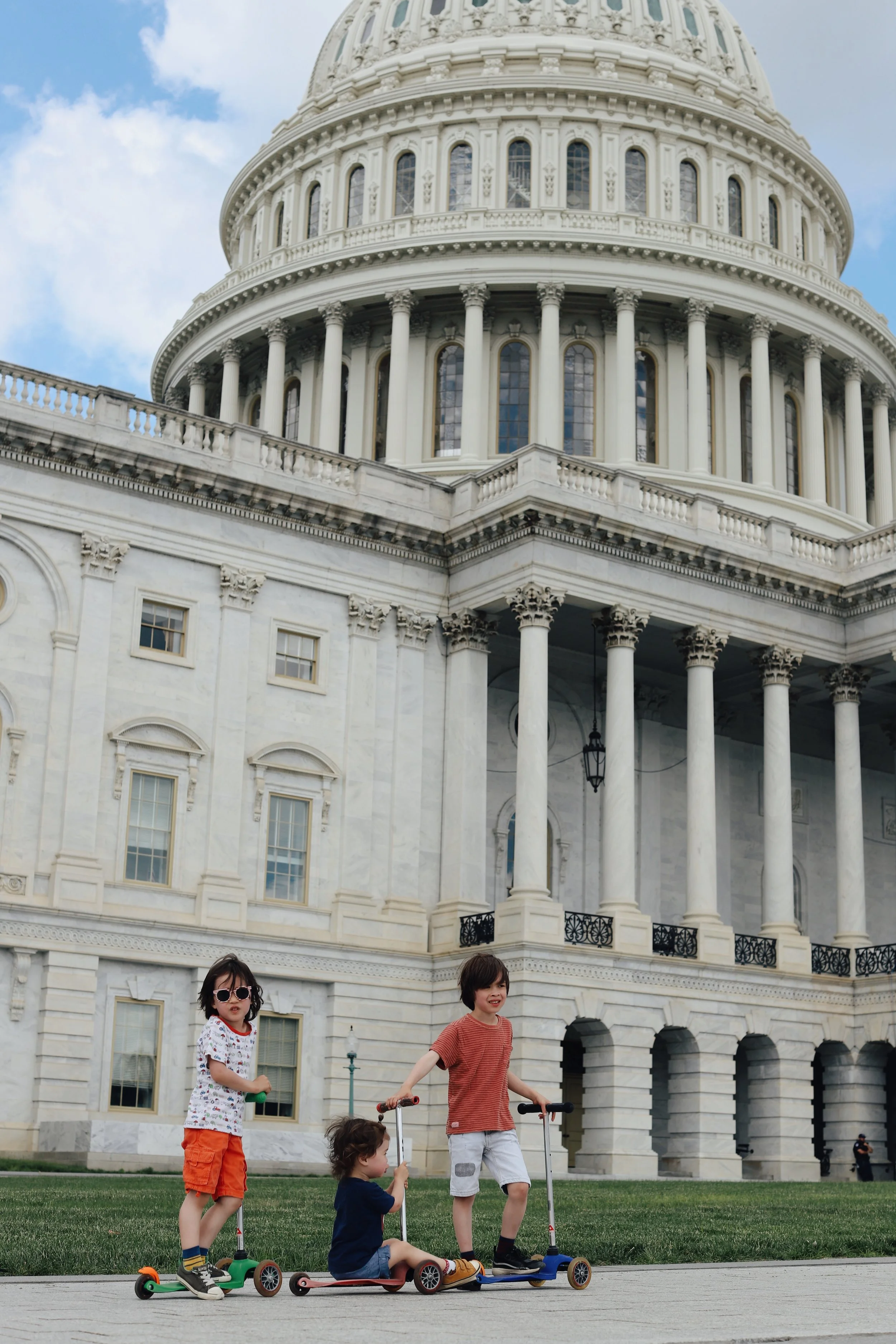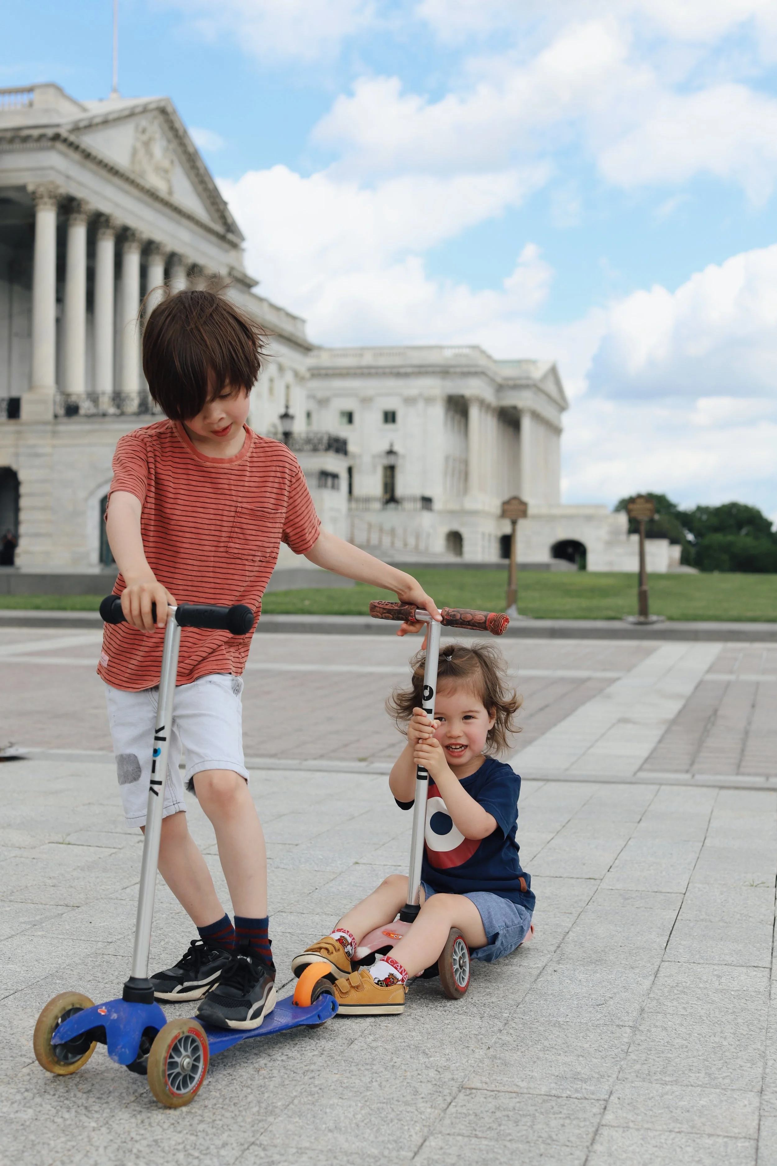 As we approached the District, we made a pit stop in our old neighborhood in North Bethesda, MD. We moved when my second child was just 6 weeks old, and I wanted to take the kids on a trip down memory lane, including grabbing a bite (and requisite restroom stop) at our fave Italian market and then taking a walk around our old townhouse development, which has the prettiest landscaping of winding paths, gazebos, and lily and koi ponds. We ate cupcakes and fresh apricots from the market under the gazebo and then the kids zipped around the winding paths on their scooters. I still remember all the sleepy long walks while wearing newborn baby Rowan in a carrier. Here’s a funnier story – when he was two weeks old I took him to the pool but locked myself out of my apartment and had to scale the balcony to get back inside… I laid him down on the grass and he just looked up at me, peacefully cooing the whole time I did ninja calisthenics.