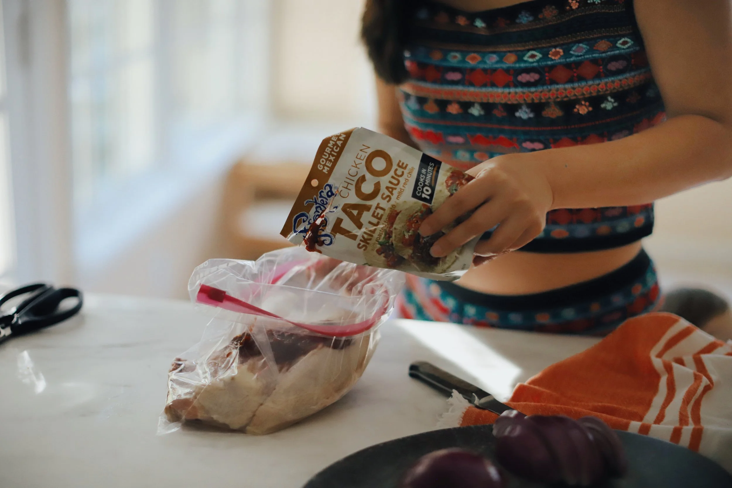 Wholesome Pantry Split Chicken Breasts, marinated with Frontera Chicken Taco Skillet Sauce*, roasted, and shredded
