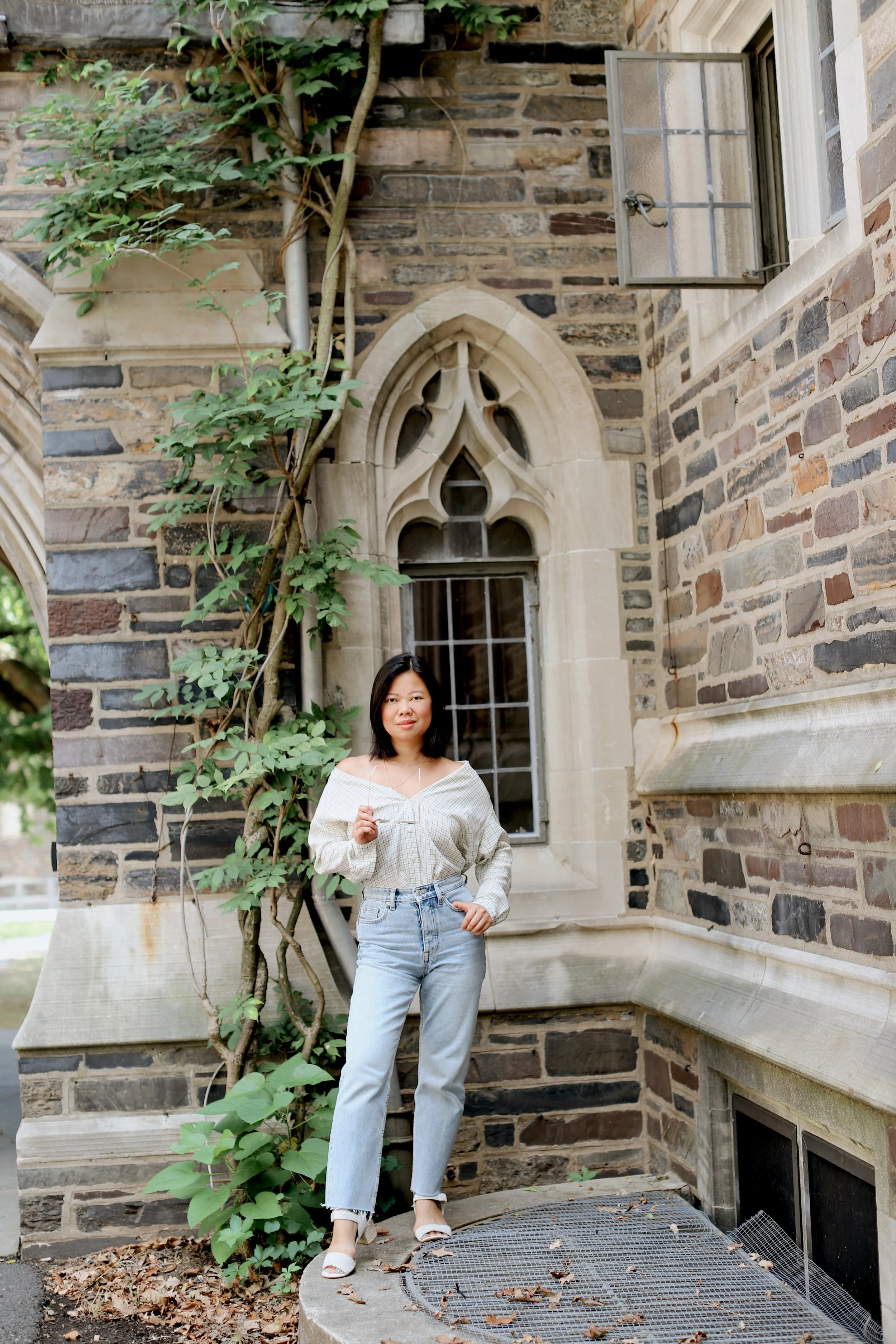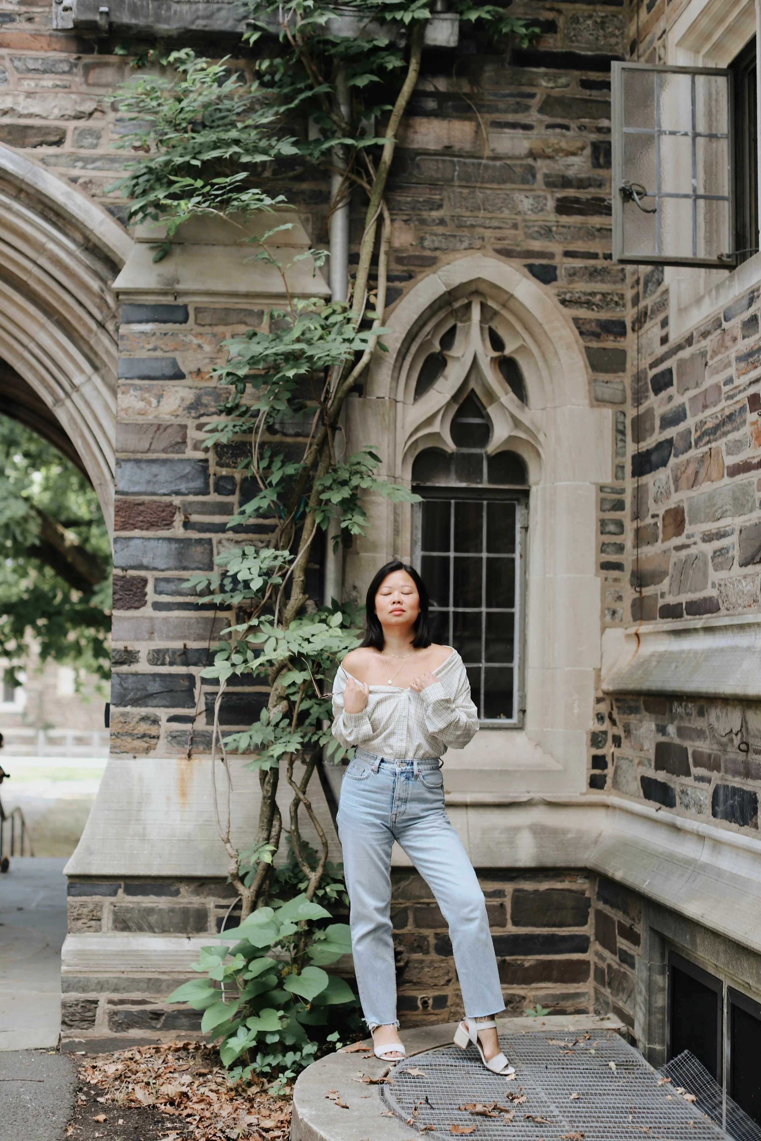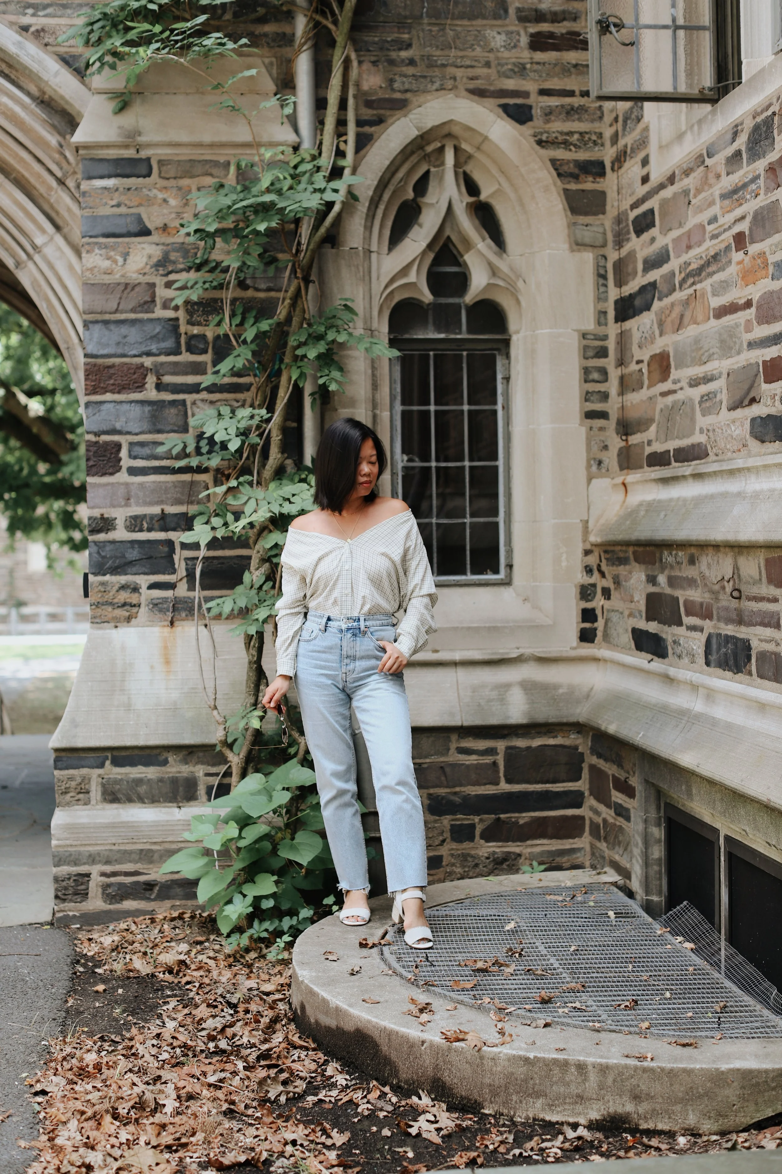 So what’s a seasonally-sane girl to do? We get clever, and try to compromise with creative styling hacks like turning button downs into temporary off-the-shoulder blouses or wearing oversized blazers over silky slip dresses. Naturally, since many places around the US are still plenty warm, I thought I’d pop in and lend my transitional styling tips (including how to create this faux off the shoulder look) to get you through this awkward period some call Second Summer. Let’s go!
