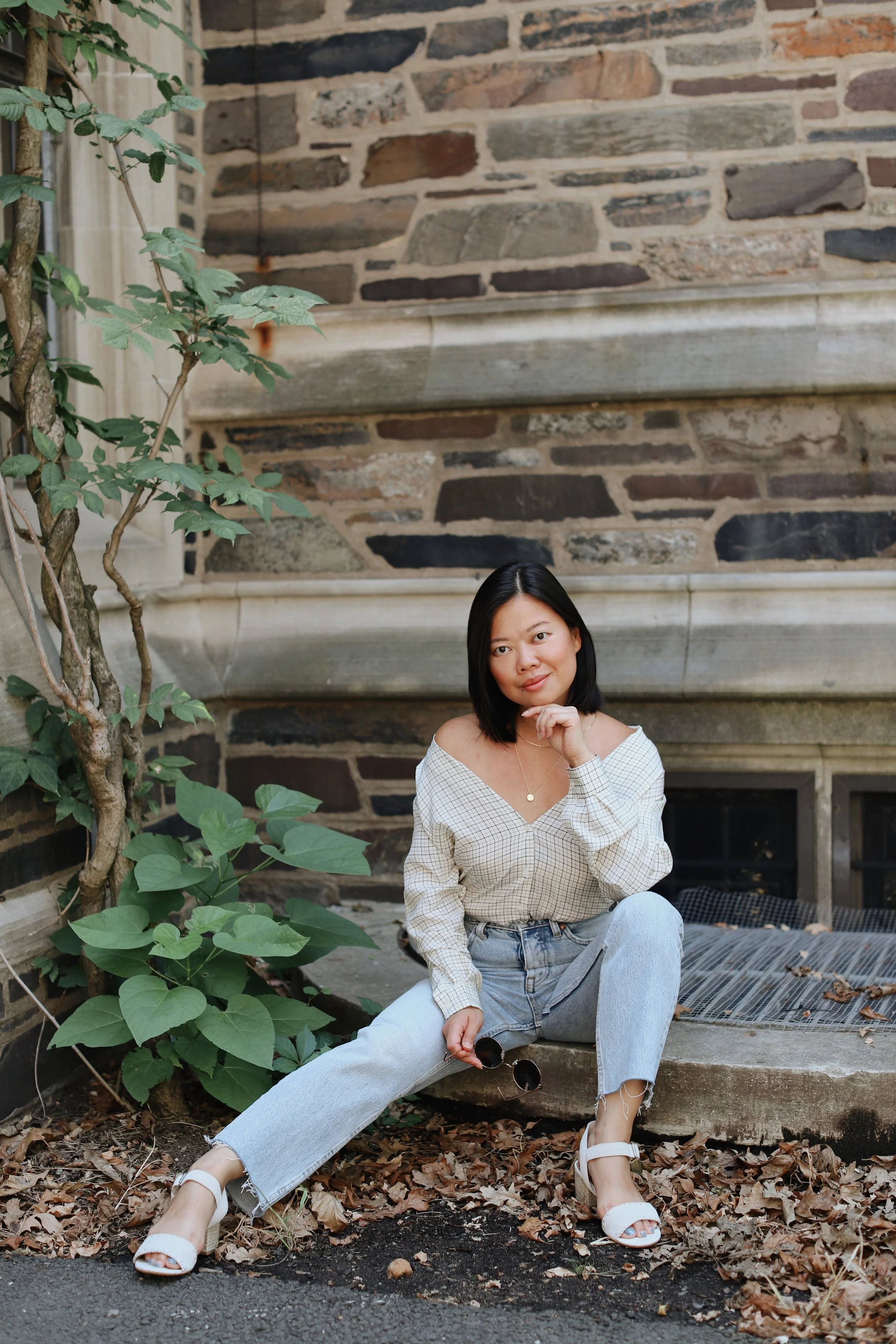 As much as I love the warmth and glow of summer, it does excite me to think about fall dressing. But of course, as any Northeasterner will tell you, it does get tricky sartorially speaking, because of the various stages of our summer season here in NJ/NYC: there’s Summer, Hell’s Front Porch (100 degrees, ya’ll), False Fall (when you get a sudden spell of 60 degree temps), then Second Summer, and finally, Actual Fall. Right now, we’re in that Second Summer phase even though it’s September 2nd – the temps are still blazing hot outside so just the thought of sipping a Pumpkin Spice Latte is enough to make you break out in sweat. Thankfully, when I snapped these photos of my transitional summer-to-fall outfit, it was a cooler day. False Fall, ya know?