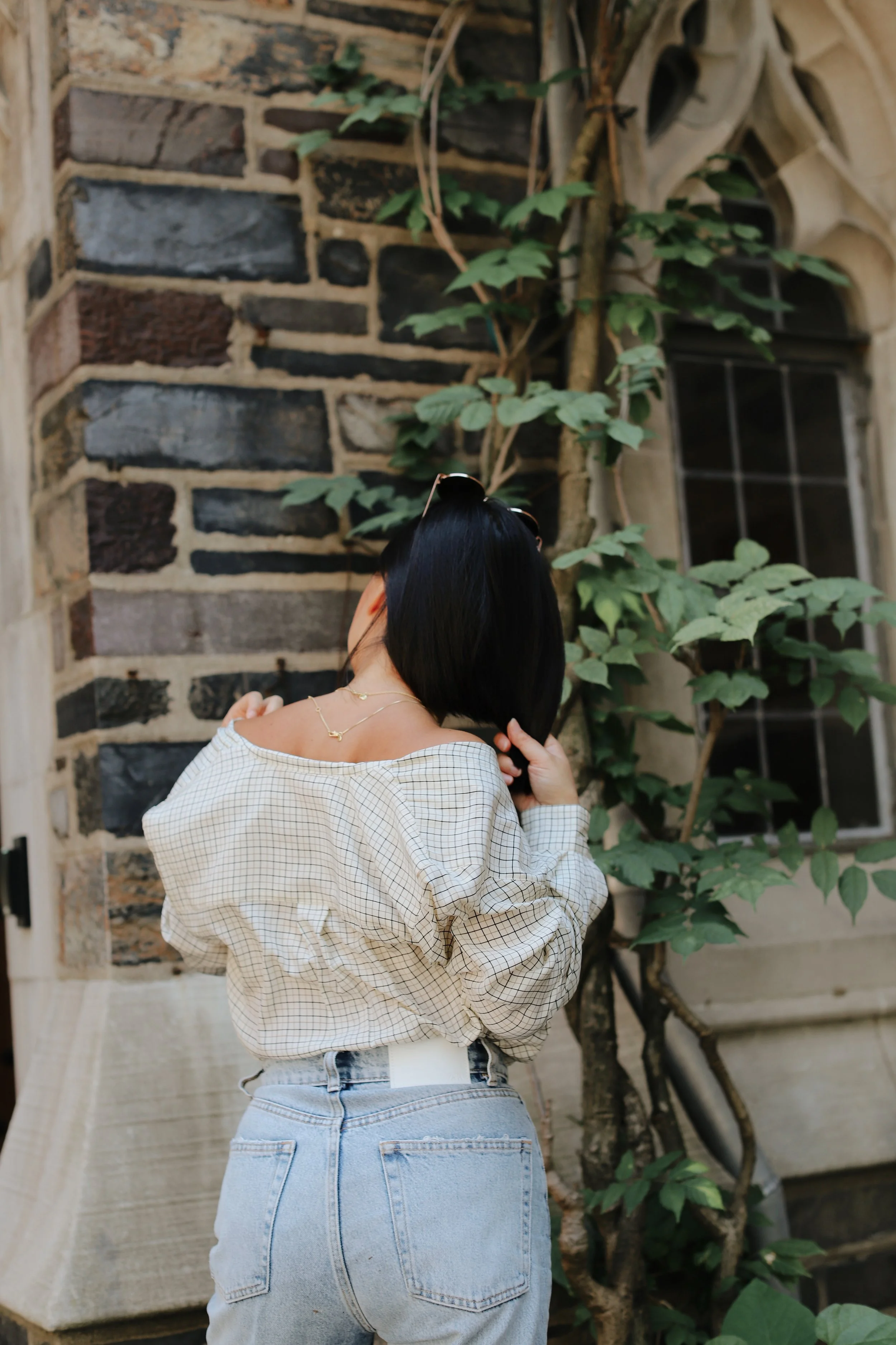 Button downs // Dust off that button-down collar shirt and break it out for summer to fall. Wear now for summer by leaving the top few buttons undone, pulling the top off your shoulders – and don’t forget to tuck in the collar in the back! An easy peasy faux off the shoulder top! Wear later buttoned up for fall with a high-waisted denim for a sleek 70s look.