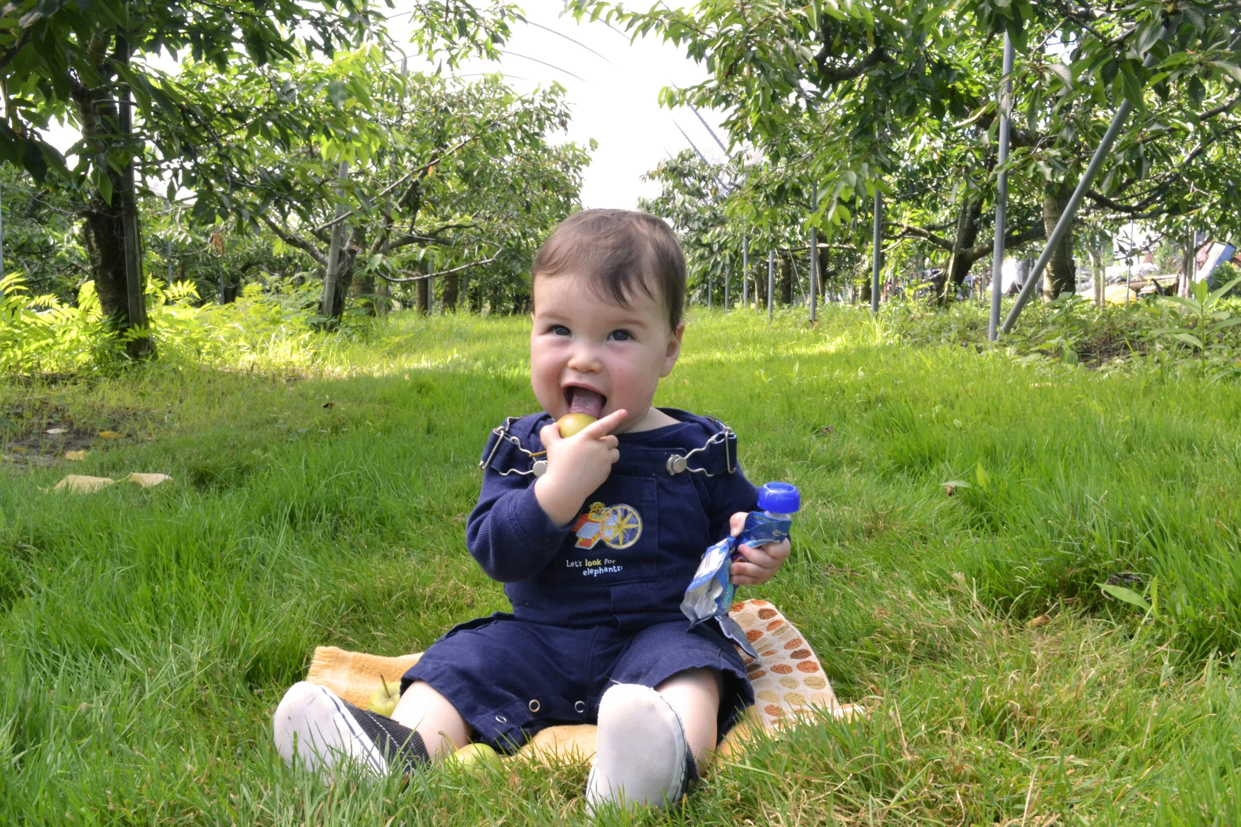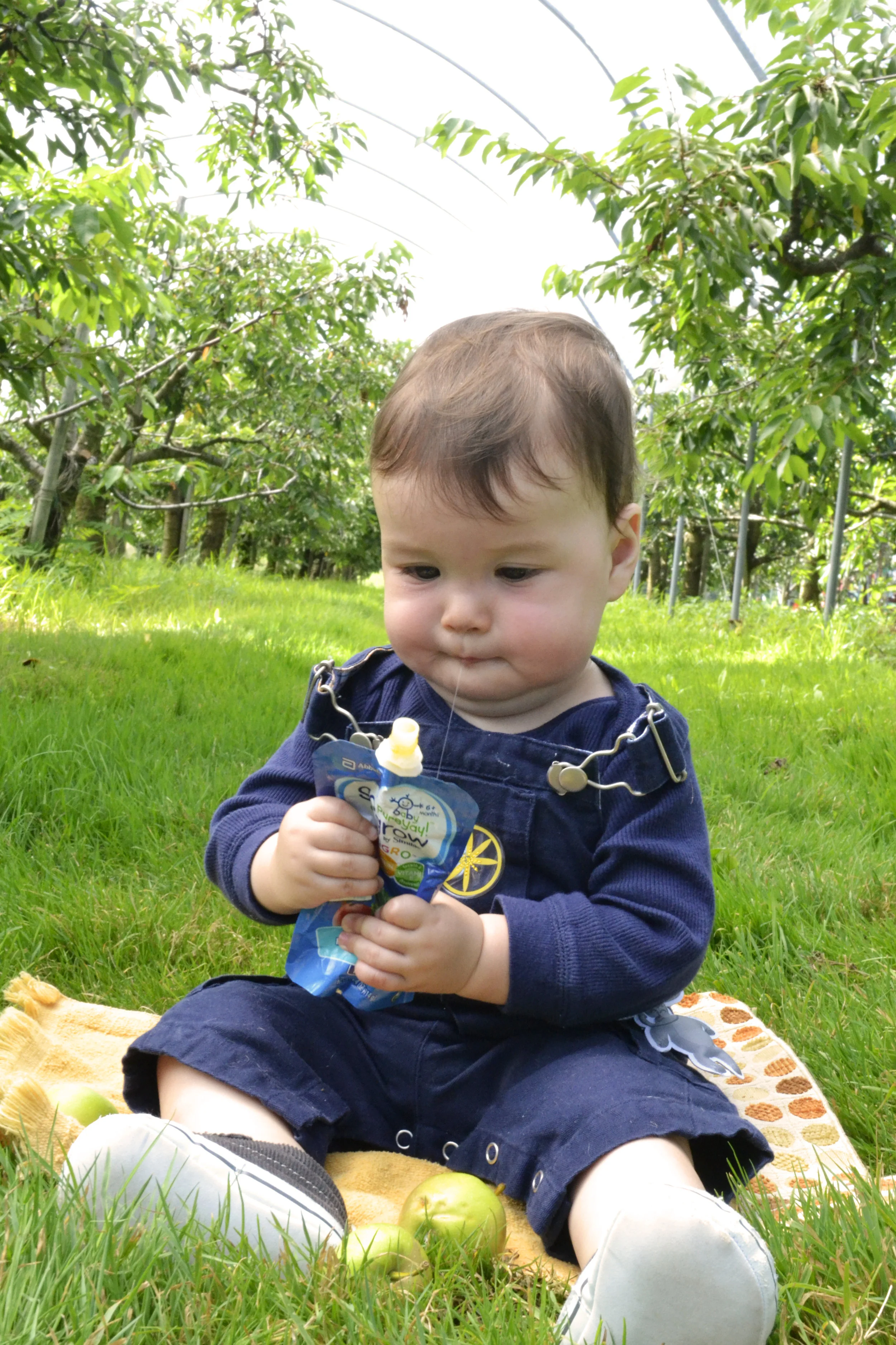 The perfect way to start off a summer morning? Nourishing foods, fresh air, and outdoor play! We took along the Mango, Pear, Spinach Puree for a morning romp at our favorite farm. Baby Atticus enjoyed tasting this flavor under the shade of the cherry orchards, while big brothers ran around collecting fallen apples for him. (They might have munched on a few, too.) Atticus finished most of the pouch so it’s safe to say that he thoroughly enjoyed this flavor – not to mention squeezing it out, too! I’ve always believed that introduction to a wide variety of fruits and veggies at an early age is an important strategy to improve the quality of children’s diets and lifestyle. I must have done something right because my firstborn now loves my homemade kale salad recipe!