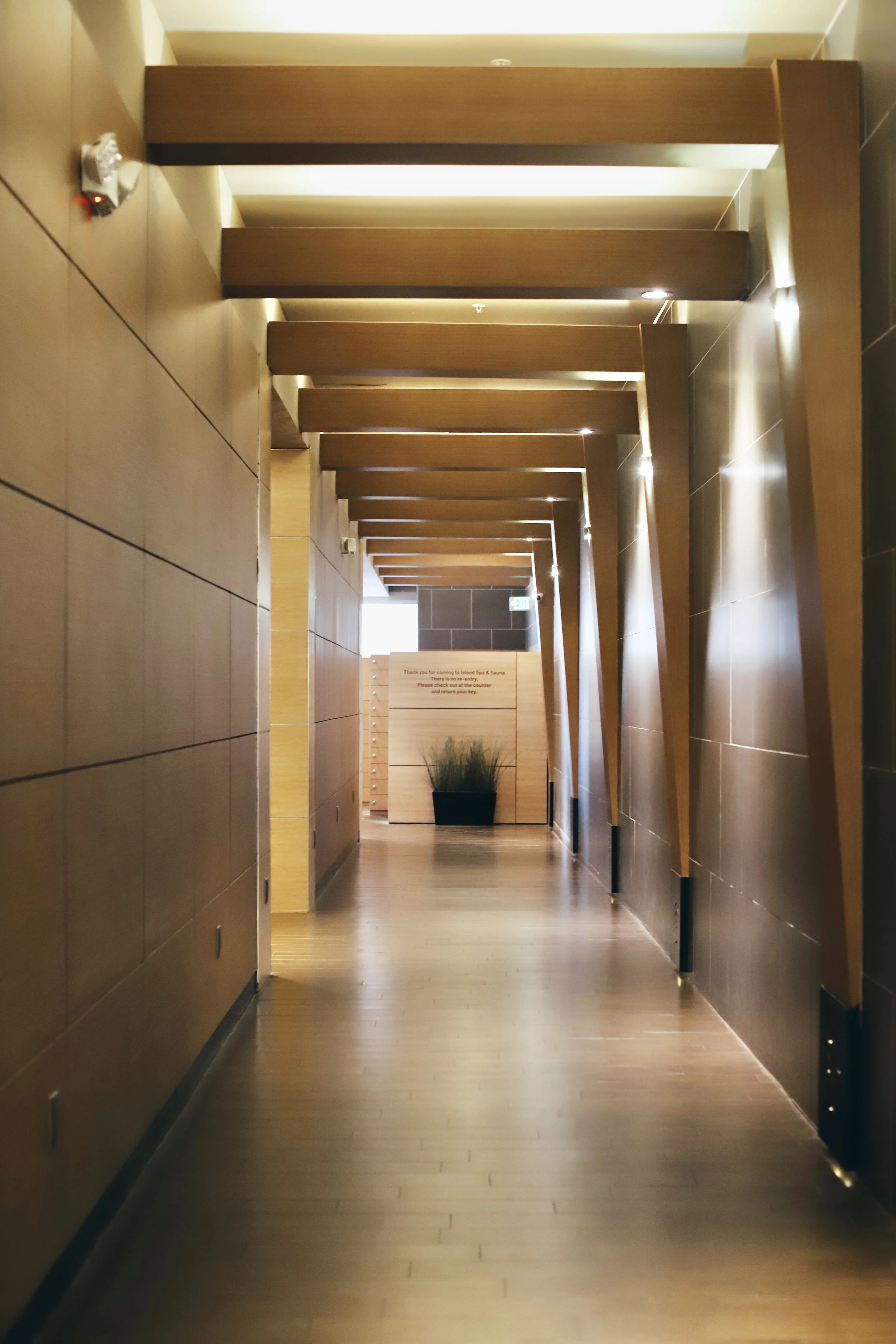 When you get to Island Spa, you will check in at the front desk. They will check you in to your booked services and give you a locker key and spa uniform. For sanitary reasons, you will put away your shoes in a separate mini locker right in the lobby. You’ll be barefoot for the rest of the day! Then head to the gender-separated bathhouses where you can either change into your spa uniform and head out to the dry saunas, or get undressed to your birthday suit and hit the hot baths in here.