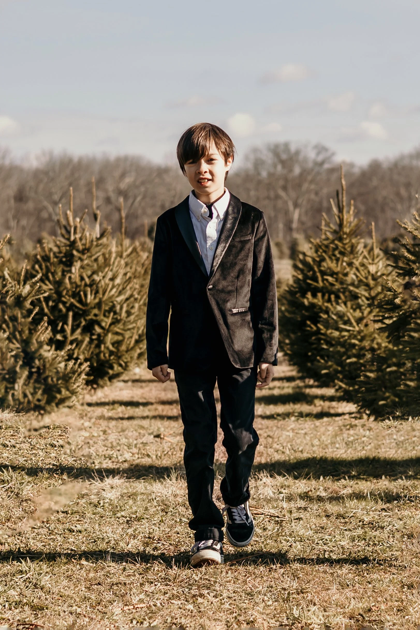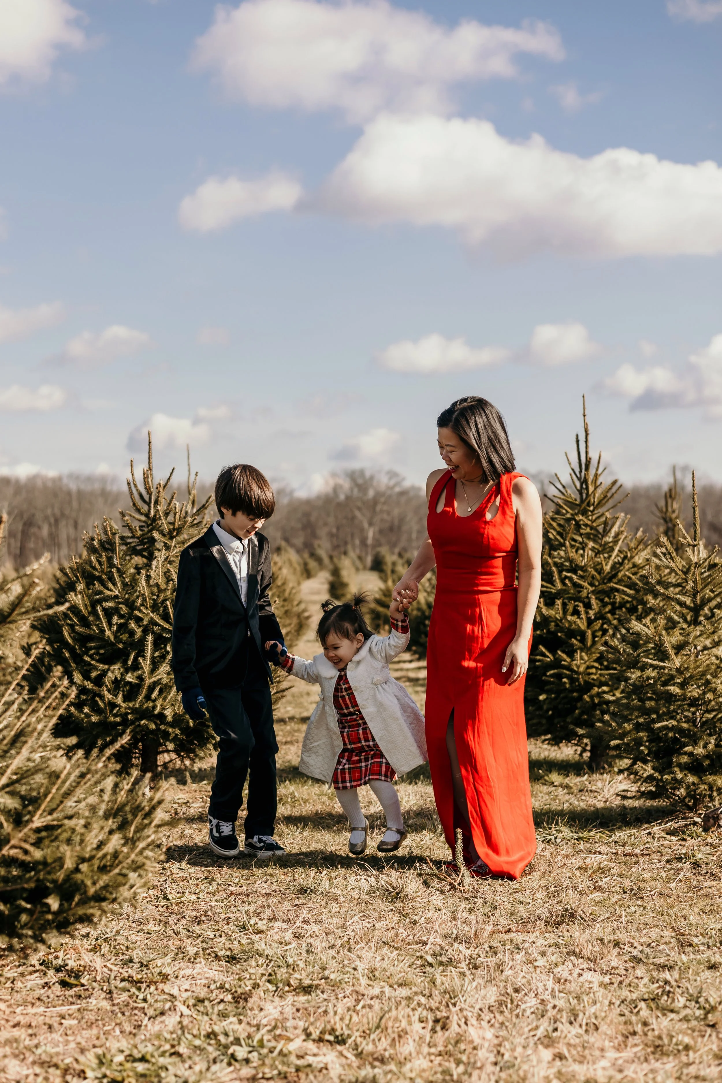 Some families dress up, some wear cozy layers, some in bright colors, others in neutrals. Ugly Christmas sweaters are also a fun option for a photo shoot at a Christmas tree farm! But you all know me. I love any and every excuse to dress up. It instantly cheers me up, regardless of the occasion, regardless of the venue. And there's no reason not to take advantage of a little photo opp, in your holiday finest. I promise, sometimes just getting dressed up and documenting it in a photo, makes a world of a difference for your mood β not to mention, it certainly elevates the obligatory holiday family photo.