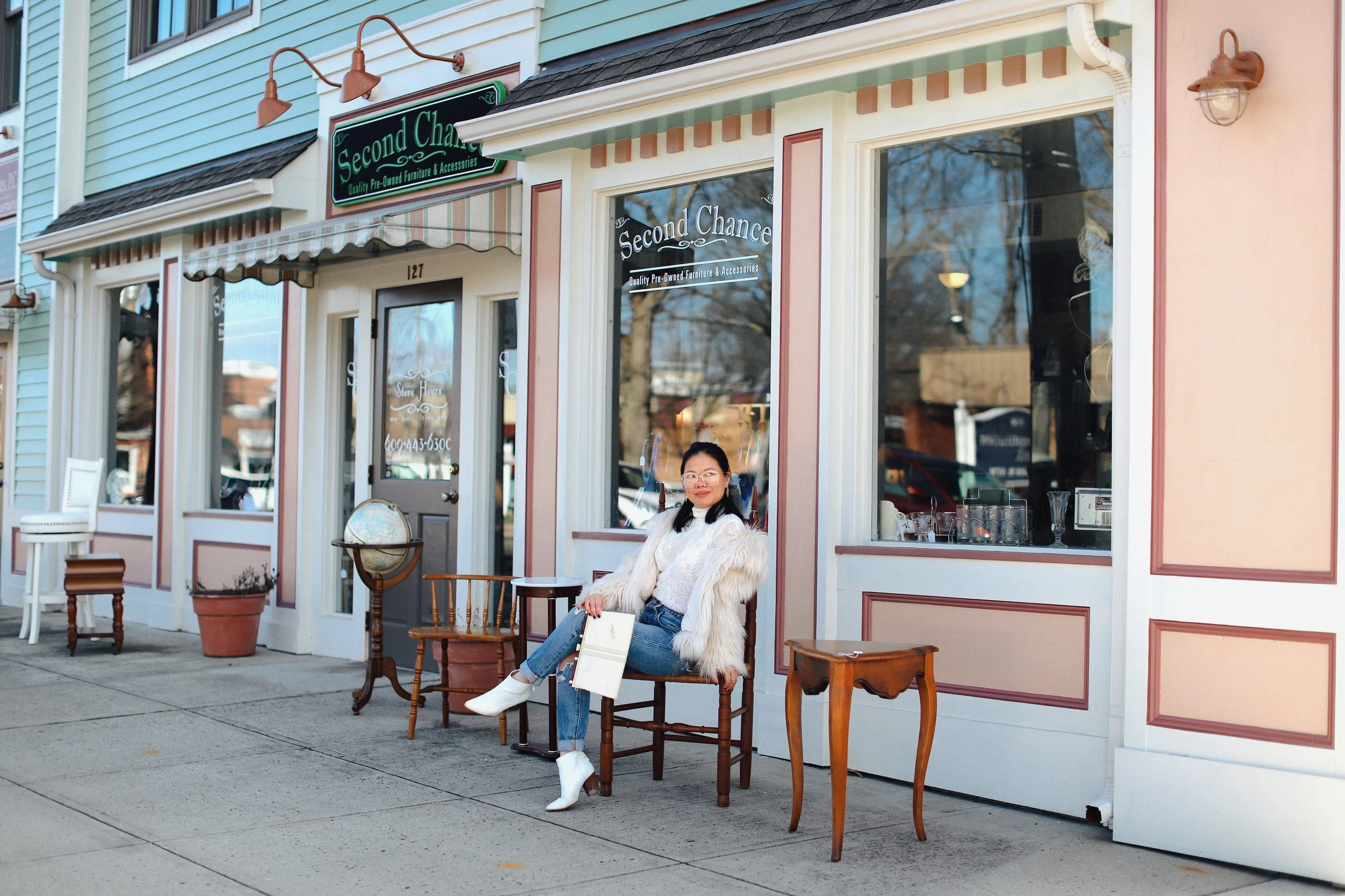 I’m 37 years old now; my style has inevitably changed since I was 21, even 27. Occasionally, Facebook memories pop up in my feed and I find myself bemused by the “club” tops and heavy blusher that I used to wear in my early 20s. Granted, location has something to do with style choices; after all, I was living in Miami at the height of the tube top and low-rise jeans trend. There is no doubt that my style is less club-girl than it used to be. My style is now more focused on comfort (without looking like a college student); I want clothes that lack confusion. I reach for things that require few or no buttons, no draping, no straps that need adjusting, crossing, or tying a certain way. Clothes that are form-fitting without being skintight, or complicated. Vintage over new, because of the stories they tell, and their weather-worn, elegant appeal – like my mother’s clutch from the 70s I’m holding here, or these dangly gold clip-on earrings from the cutest antiques shop I stumbled upon.