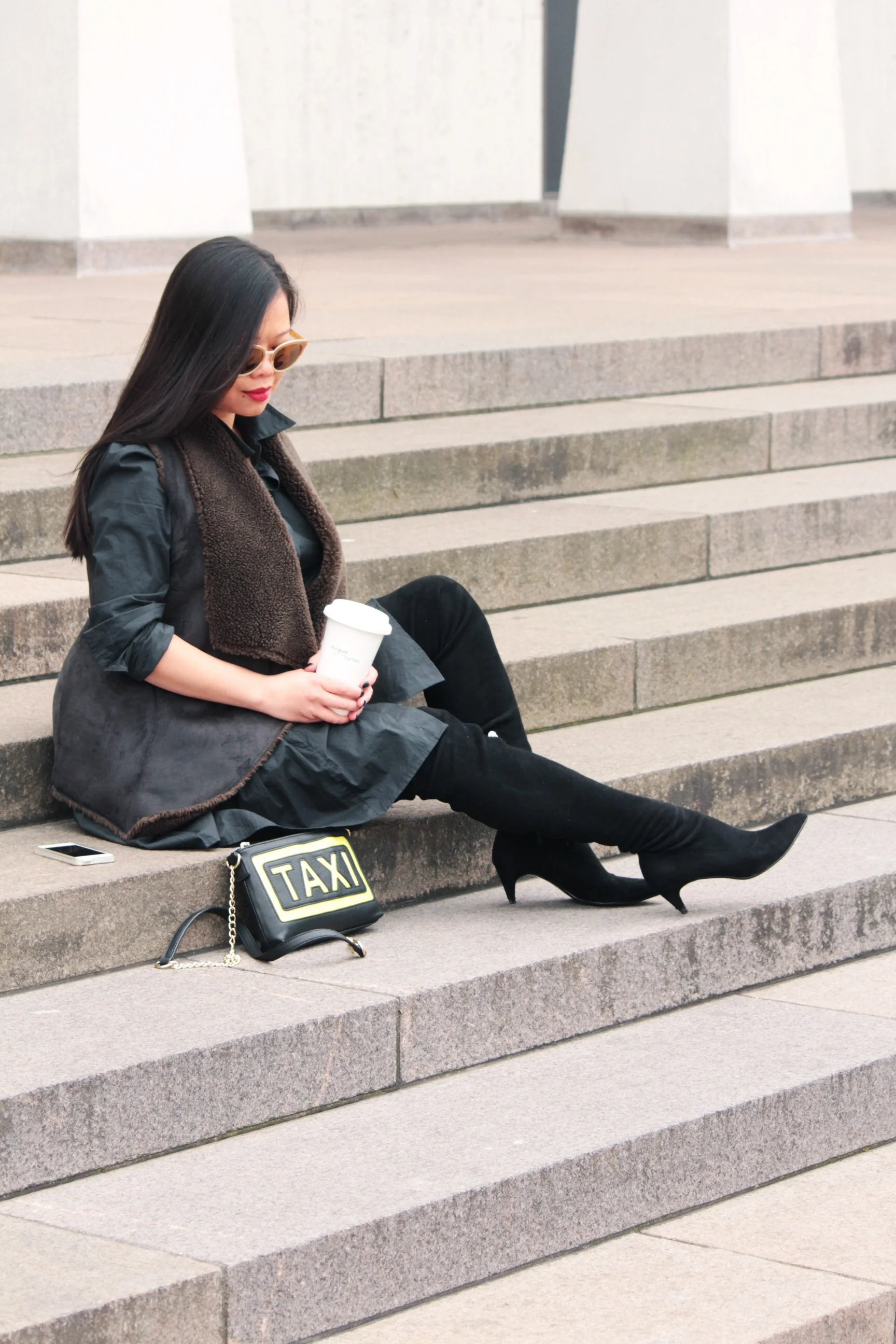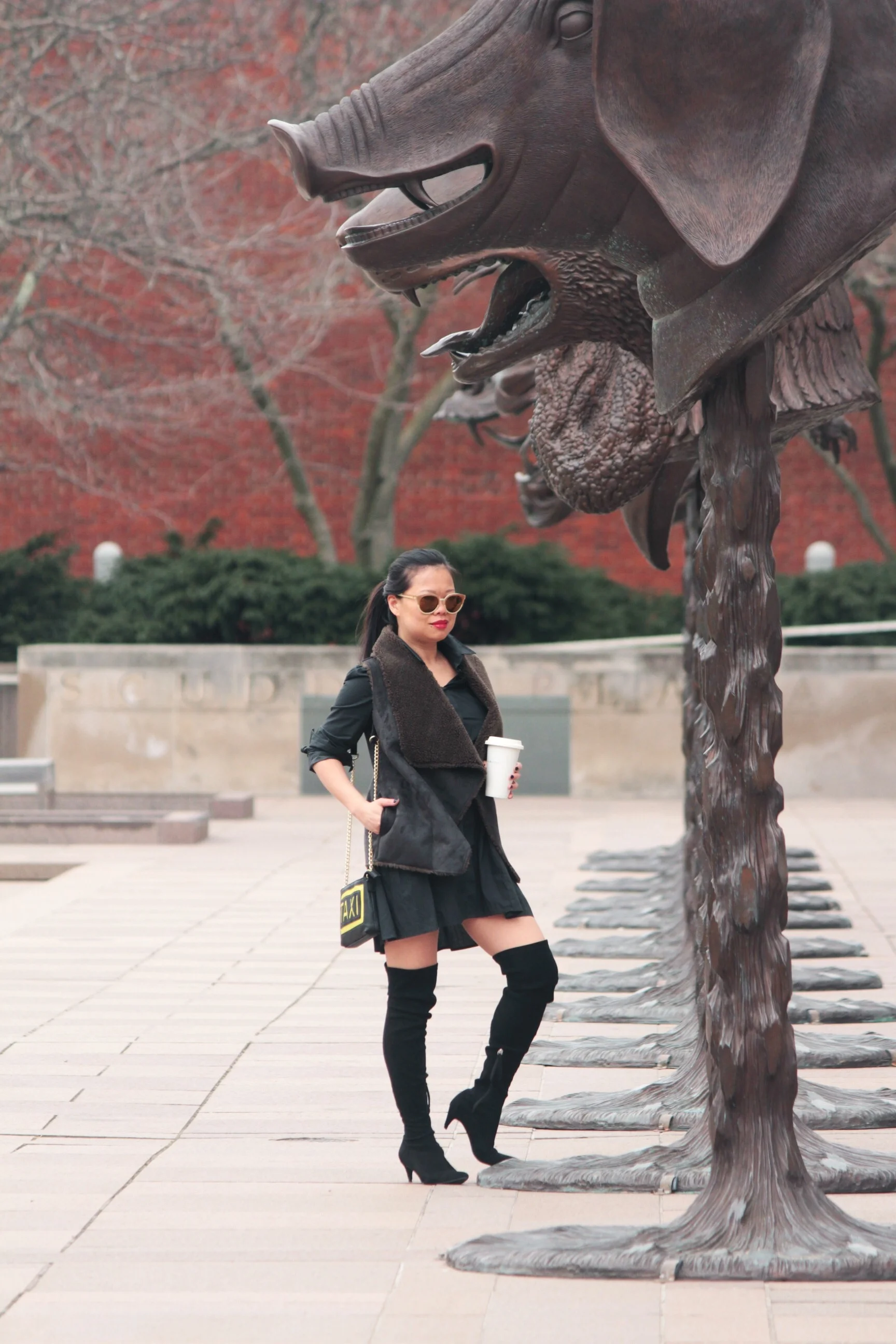 I've been all about transitional pieces lately. The weather gods can't seem to make up their minds. One day it's 40 degrees, the next it's 75. From fall to winter, and winter to spring, the perfect layering pieces are the ones that look classic and will give maximum mileage and sartorial staying power to your wardrobe as you transition between seasons. I scored this Velvet by Graham & Spencer luxe sherpa vest at Marshalls for less than $45 and it is one that I'll be wearing time and again over the years. Bonus β it's so cozy and soft that it's like getting a warm hug from a sheep! What are your style tricks for in-between season dressing?