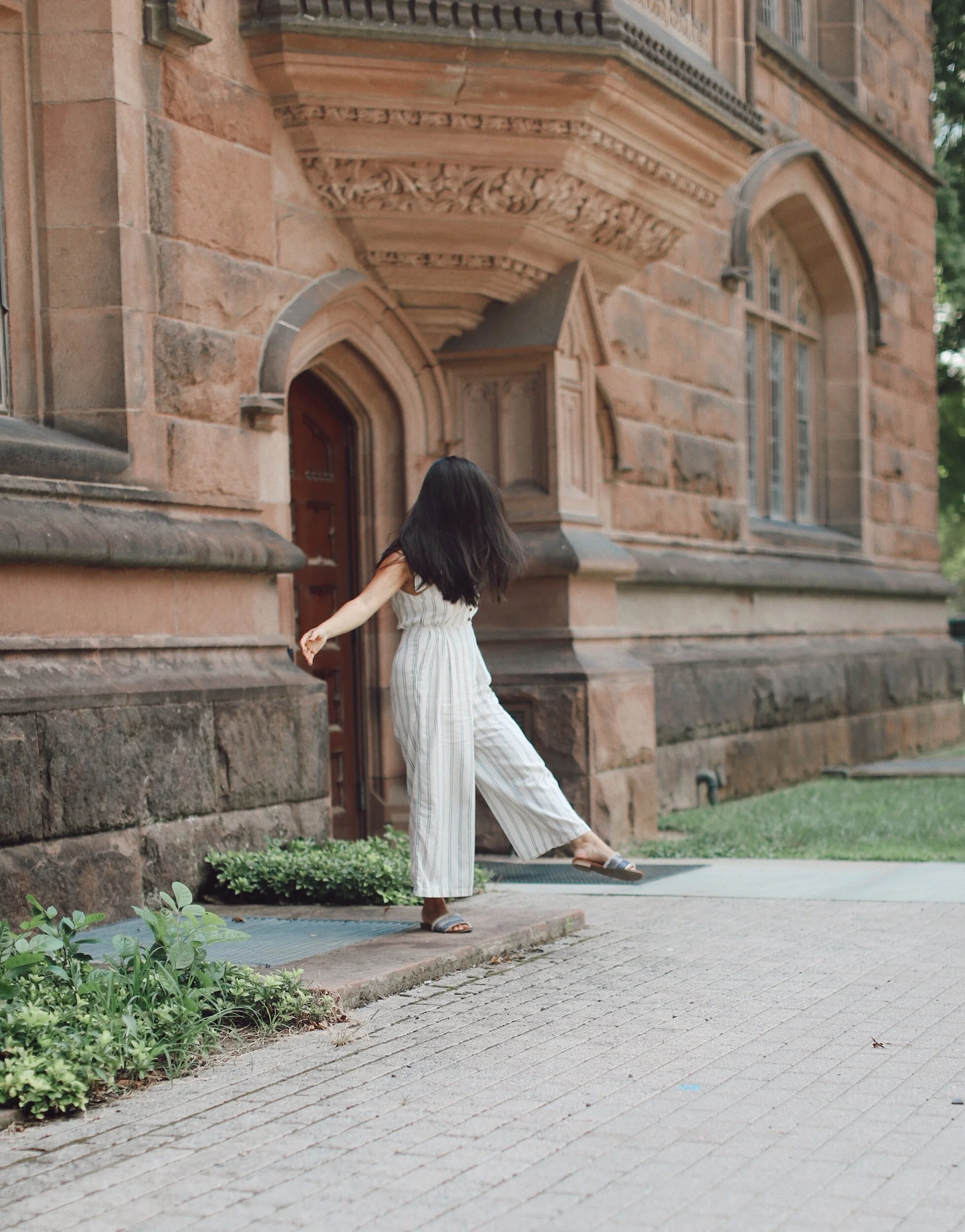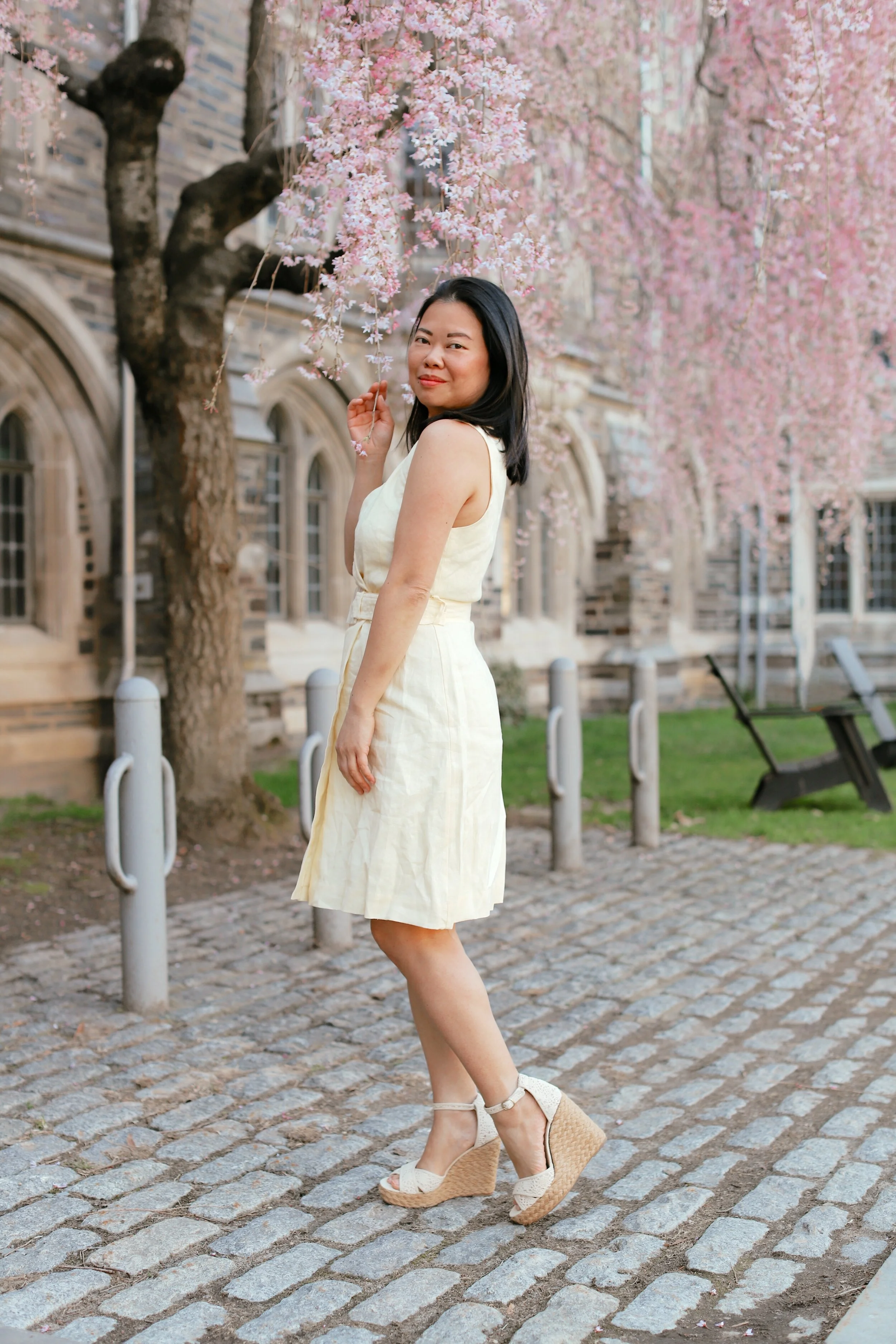Every spring and fall, Princeton University in Princeton, New Jersey brims in “lazy beauty”, an organic landscaping style pioneered by Beatrix Farrand, the University consulting landscape architect from 1915 to 1945. There are winding paths and vibrant flowering trees amongst dramatic Gothic stone buildings — all of which provide stunning backdrops for seriously Instagrammable photos. In the spring, pink and white saucer magnolias, brilliant yellow forsythia and purple wisteria take over the campus. In the fall, there are Japanese zelkova trees, native sassafras and sweet bay magnolias which set the campus on fire in magnificent fall colors of golden orange and yellow. I’m sharing 16 of my favorite photogenic spots around Princeton University — perfect for springtime portraits, wedding and engagement photos, or family photo shoots.