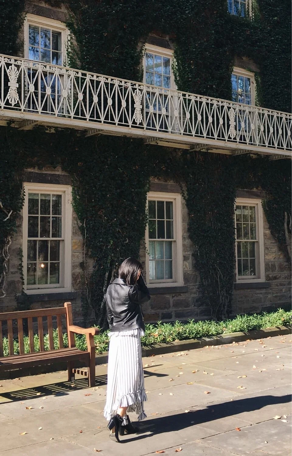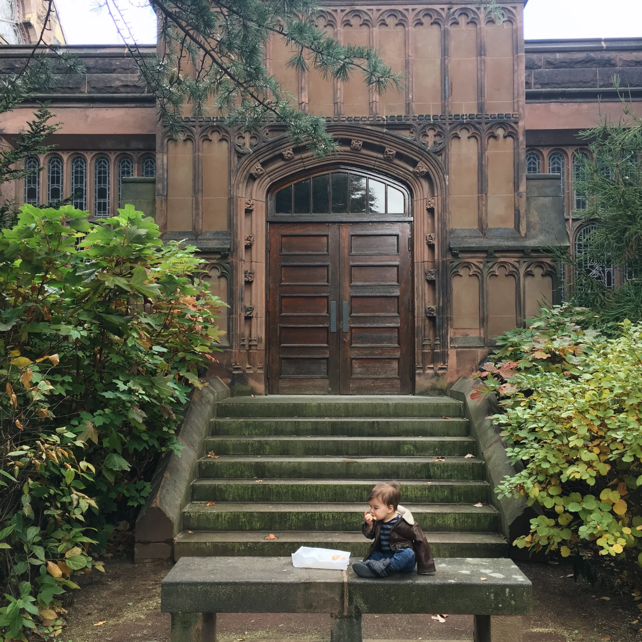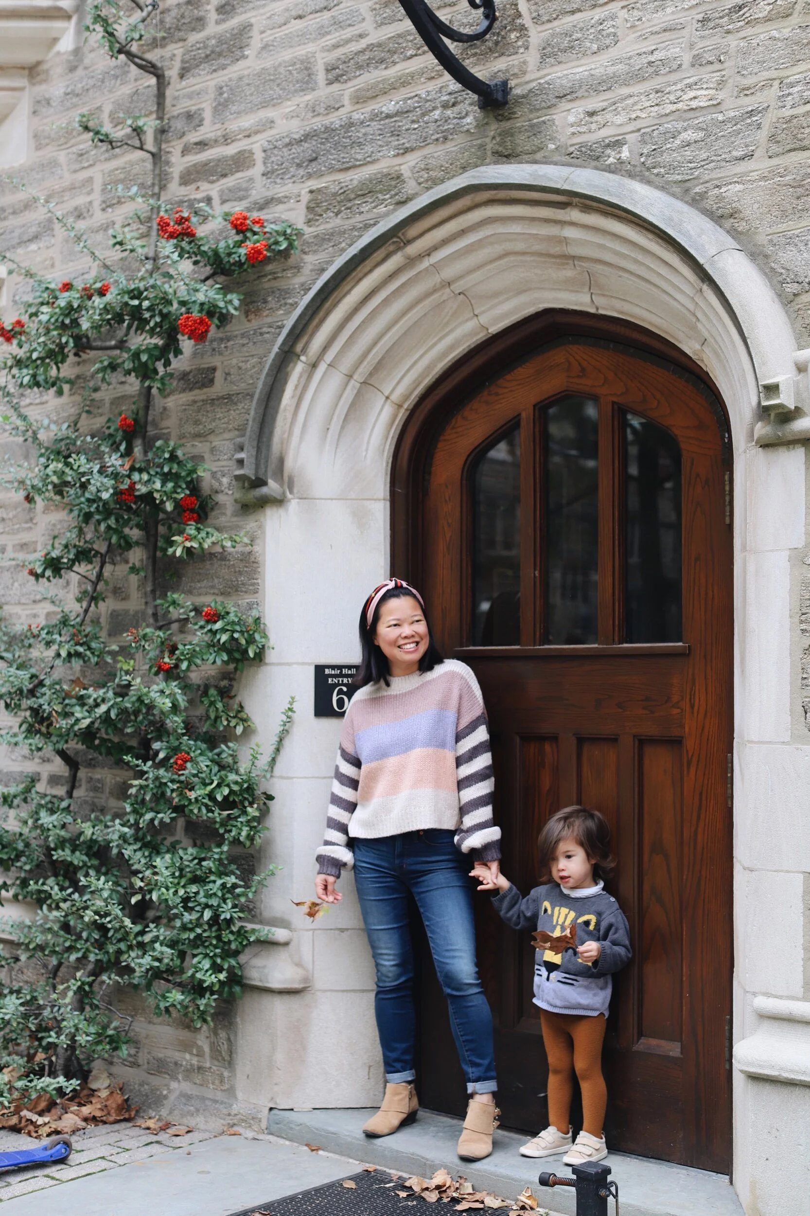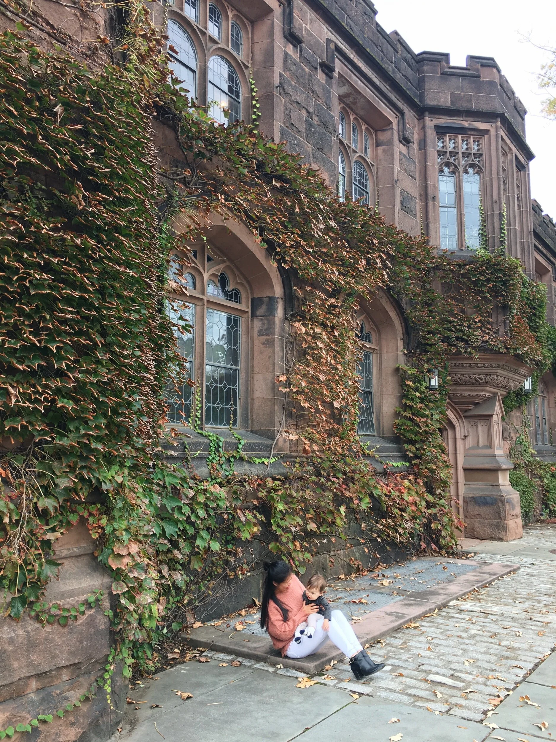 Channel collegiate vibes here at Mathey College, built in the Collegiate Gothic Style. You’d never guess that we’re standing in front of a residential college dorm. It is located in the northwest corner of the Princeton Campus, and in the fall, the stone exteriors and windows are framed by vibrant scarlet leaves — perfect for fall portraits.