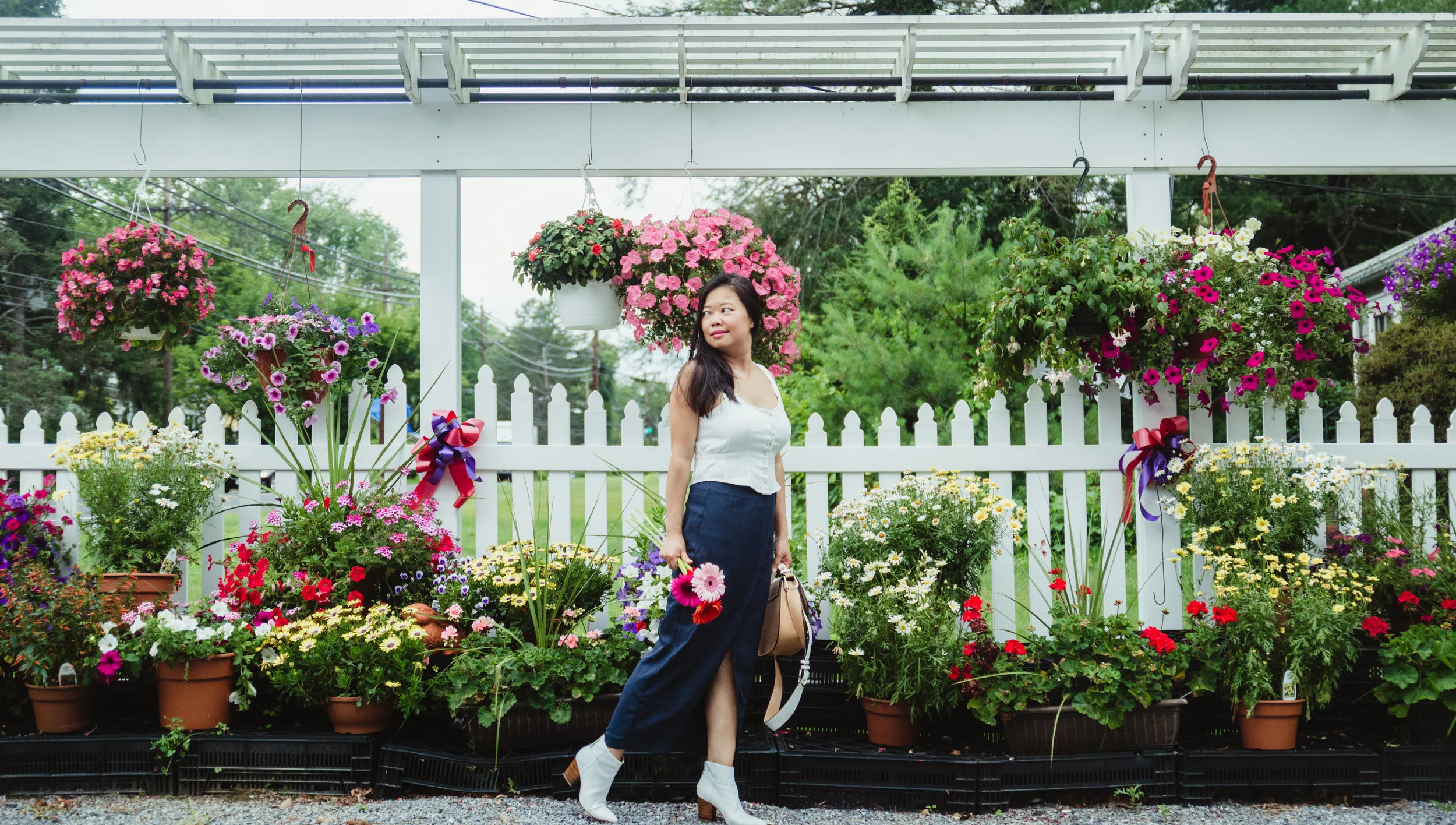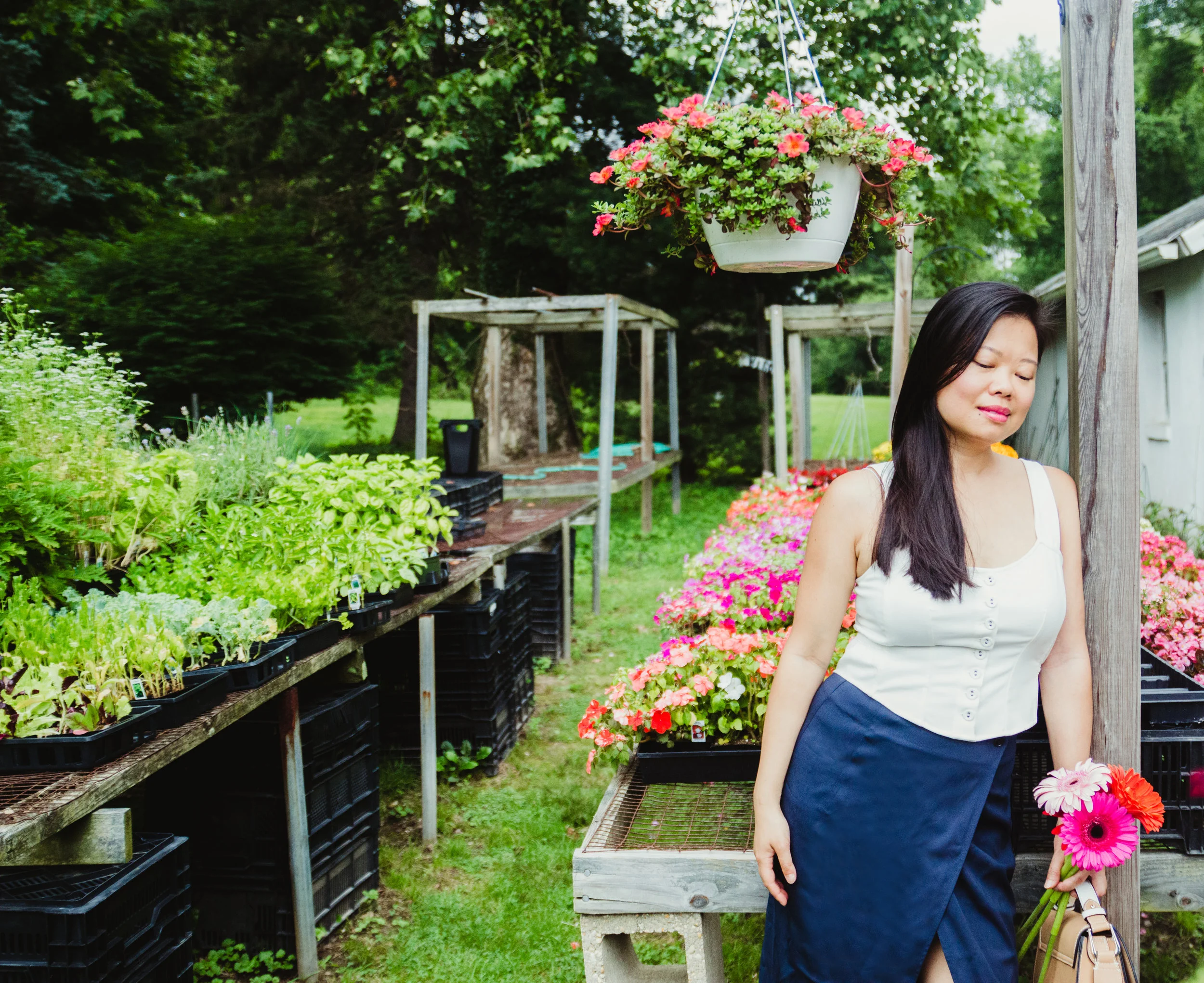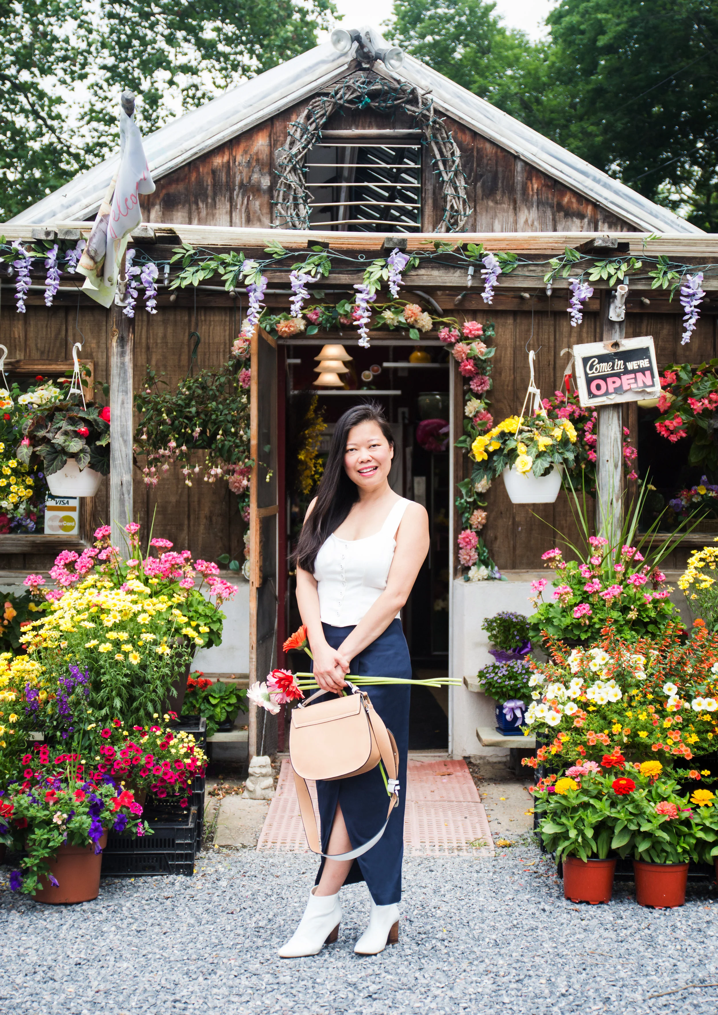You know how they say, never buy anything new when you're expecting? Bought this classic beauty at Geysir boutique in Iceland last year when I was 13 weeks pregnant, and let's just say I am doing a happy dance now that I'm able to wear it! I love the silky sheen and shades that flicker between indigo and navy depending on the lighting. (Excuse the wrinkles, because mom life.) Pair with a strappy white top and chunky heels and you're dressed for any summertime occasion, like that stroll through an irresistibly charming flower shack off the side of the road. Happy Independence Weekend!