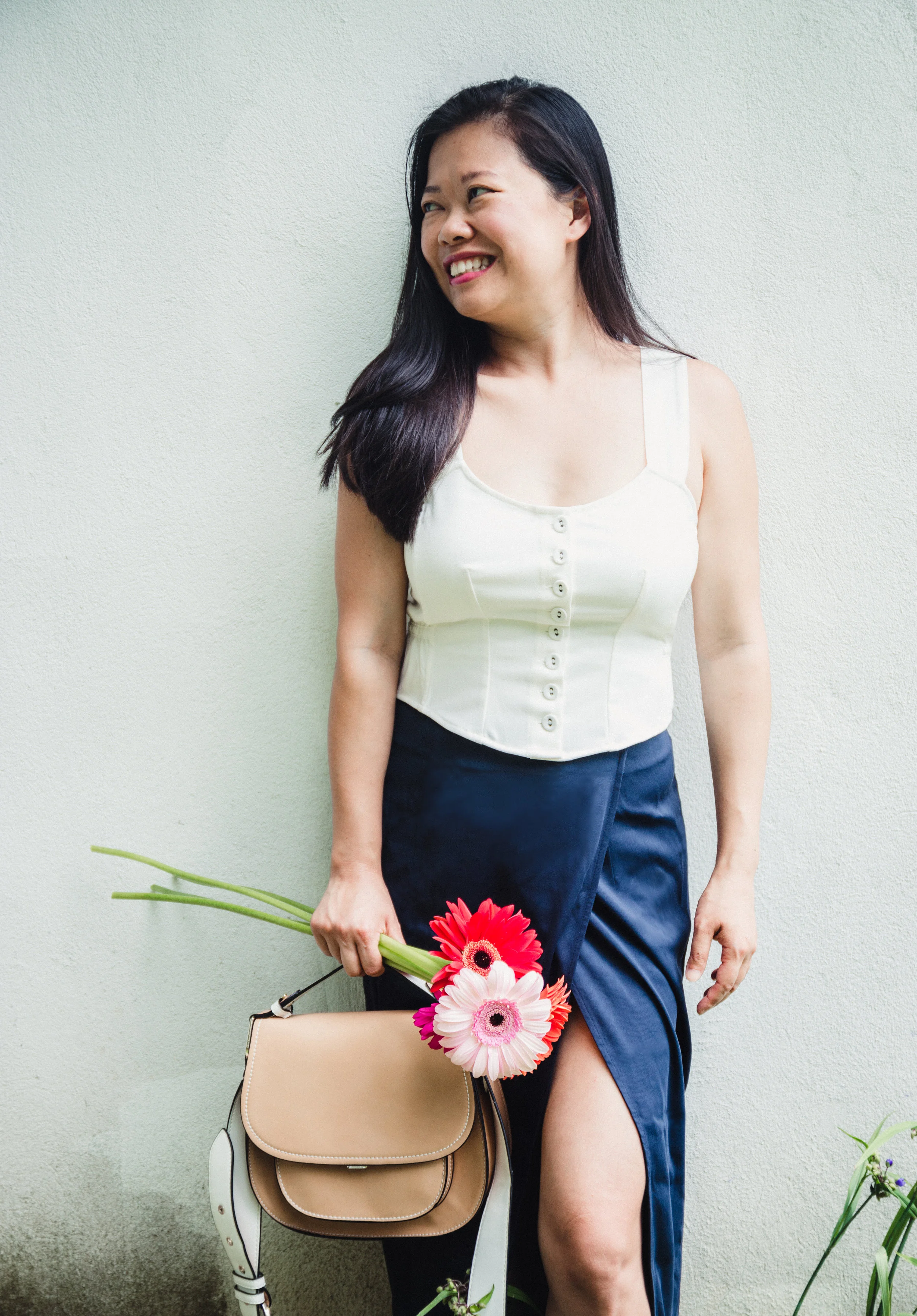 Fourth of July is a time to bring out your red, whites and blues — but I'm here to show you my favorite way to wear it year-round without looking like the American flag. When it comes to selecting pieces to add to my wardrobe, I look for versatility, longevity and simplicity — all wrapped up with a little style detail. I am a busy mom after all, but I don't like to label my closet as a "mom wardrobe". I prefer to keep the yoga pants and tees at home, and this effortless maxi skirt by Ganni with wrap split front ticks off all those boxes for me.