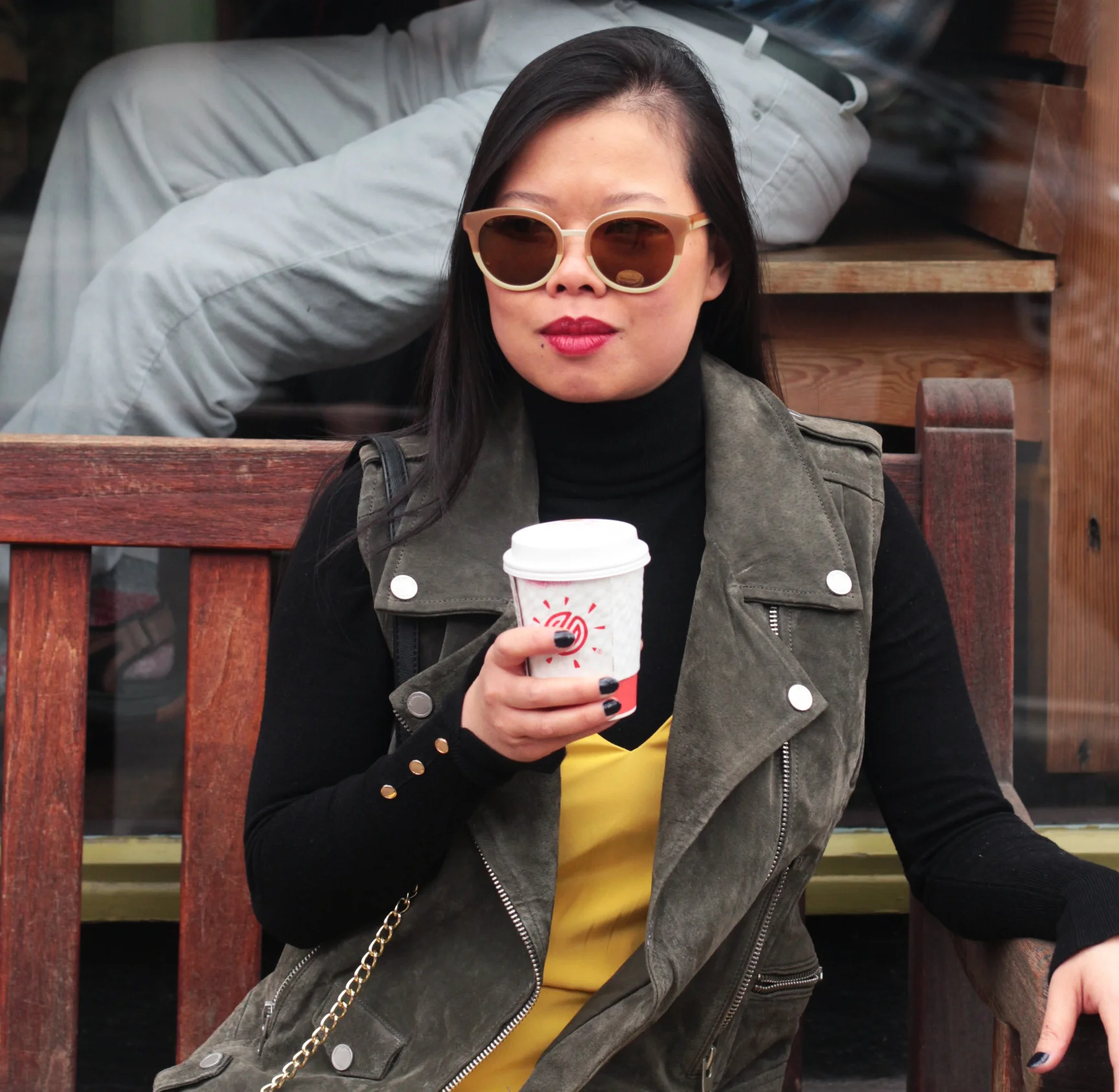 This designer suede vest is BlankNYC and I found it at Marshalls for less than $50! The grey green color is versatile enough to be worn all year round. I was shopping for home decor stuff, but may have went home with a few outerwear pieces. (See the luxe sherpa vest I wore in this look, also from Marshalls.) A woman passed by me here, gave me a funny look, and said, "Ohhhh, now it makes sense! She's taking a picture." Even if I wasn't, is it a crime to lean on a wall lol? True story. #bloggerproblems.