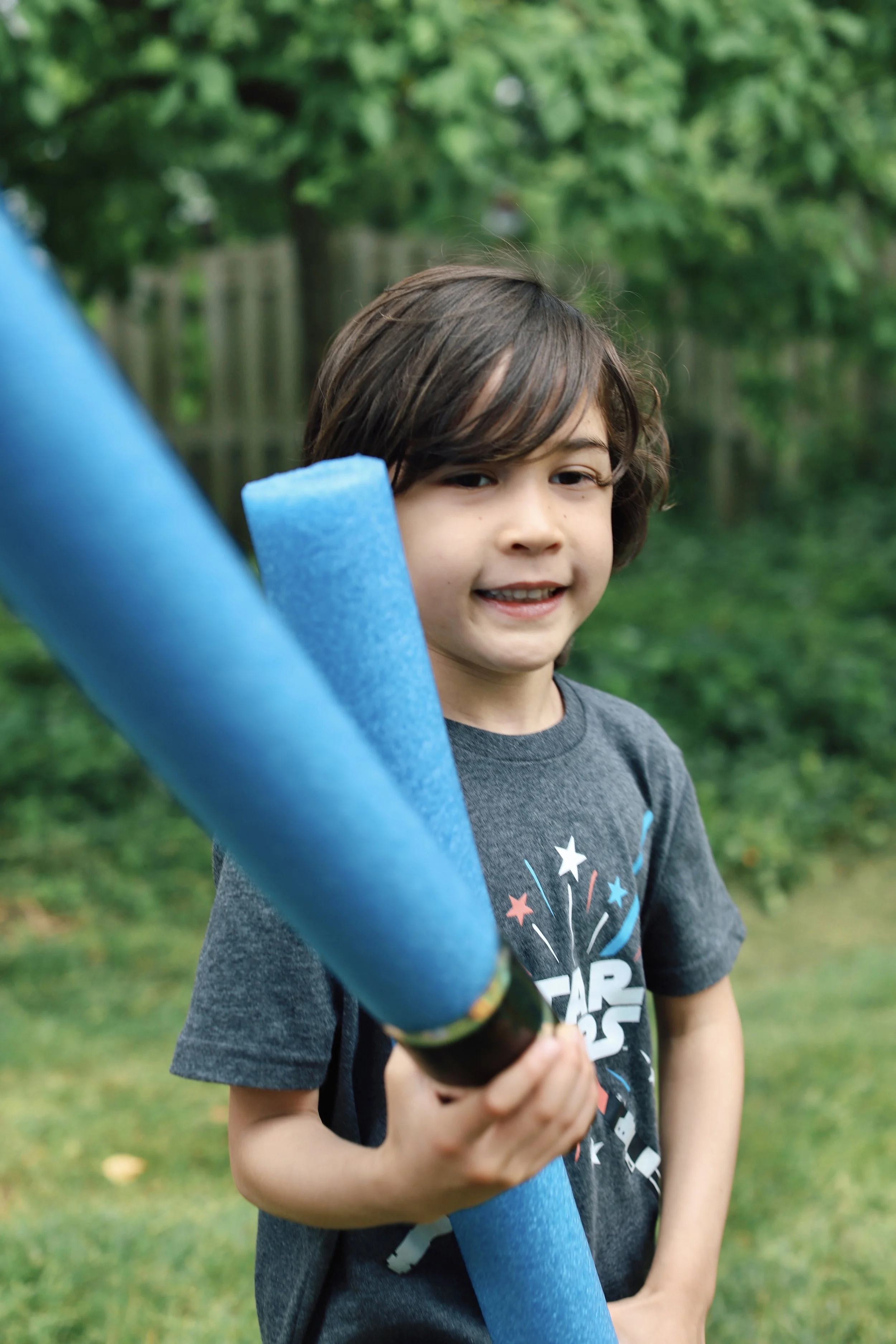 For someone who hasn’t watched a single Star Wars movie or anything in the Star Wars franchise, how’d I do planning this Star Wars themed kids birthday party for my 7-year-old son and his friends? I’d say I pulled it off. I’m thankful for Google so I could ask questions like “Are there orange light sabers?” and “Are Stormtroopers different from Clone Troopers?”, and Pinterest for providing all the DIY tutorials to make pool noodle light sabers and galaxy inspired cupcakes. And can we talk about these Stormtrooper marshmallow cupcake toppers? I made them myself using edible color markers!