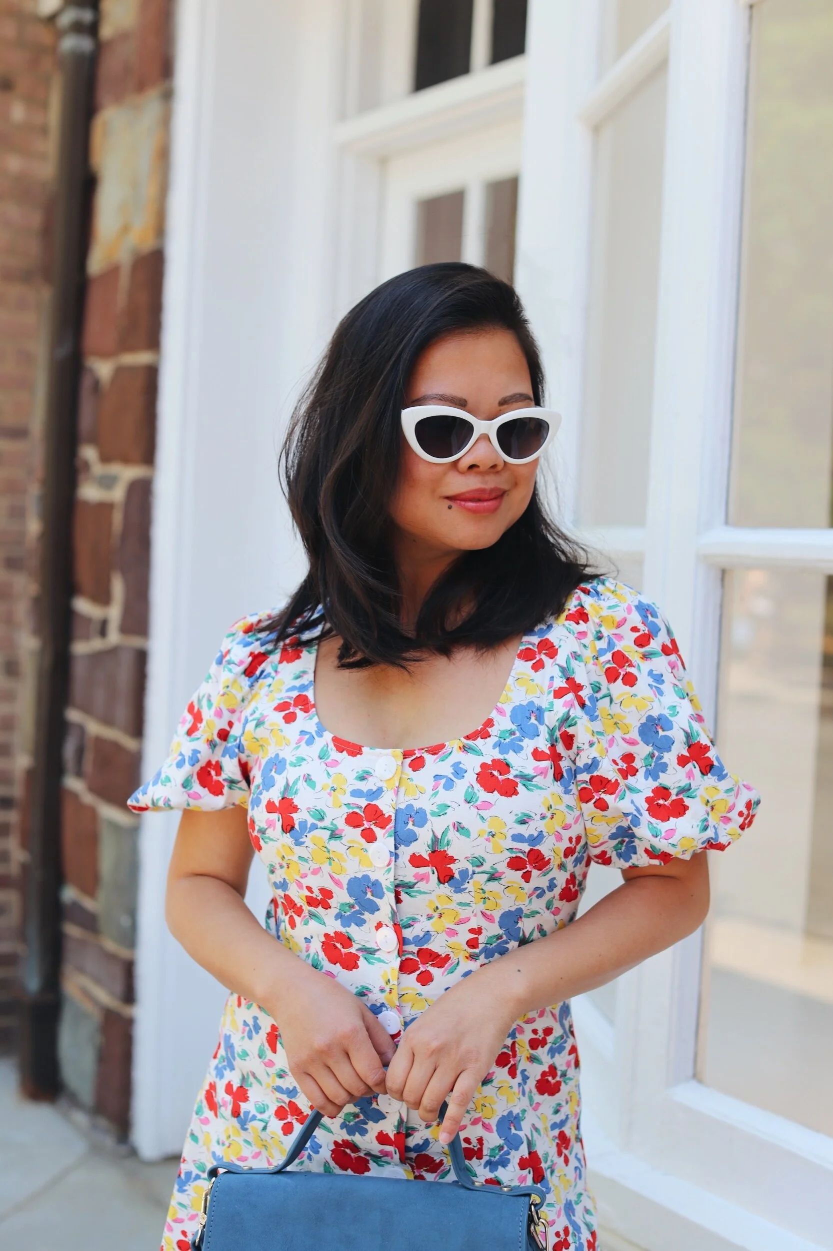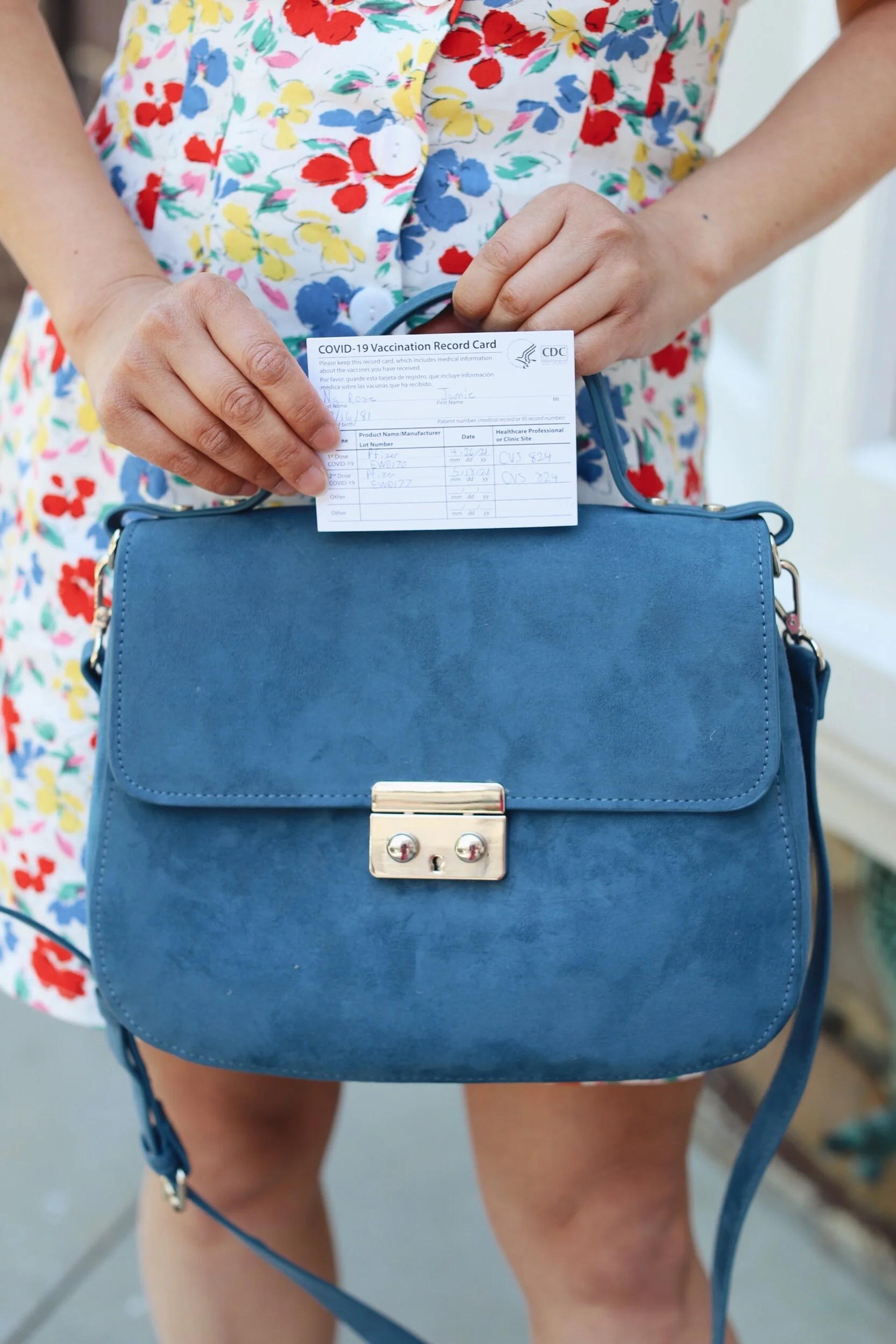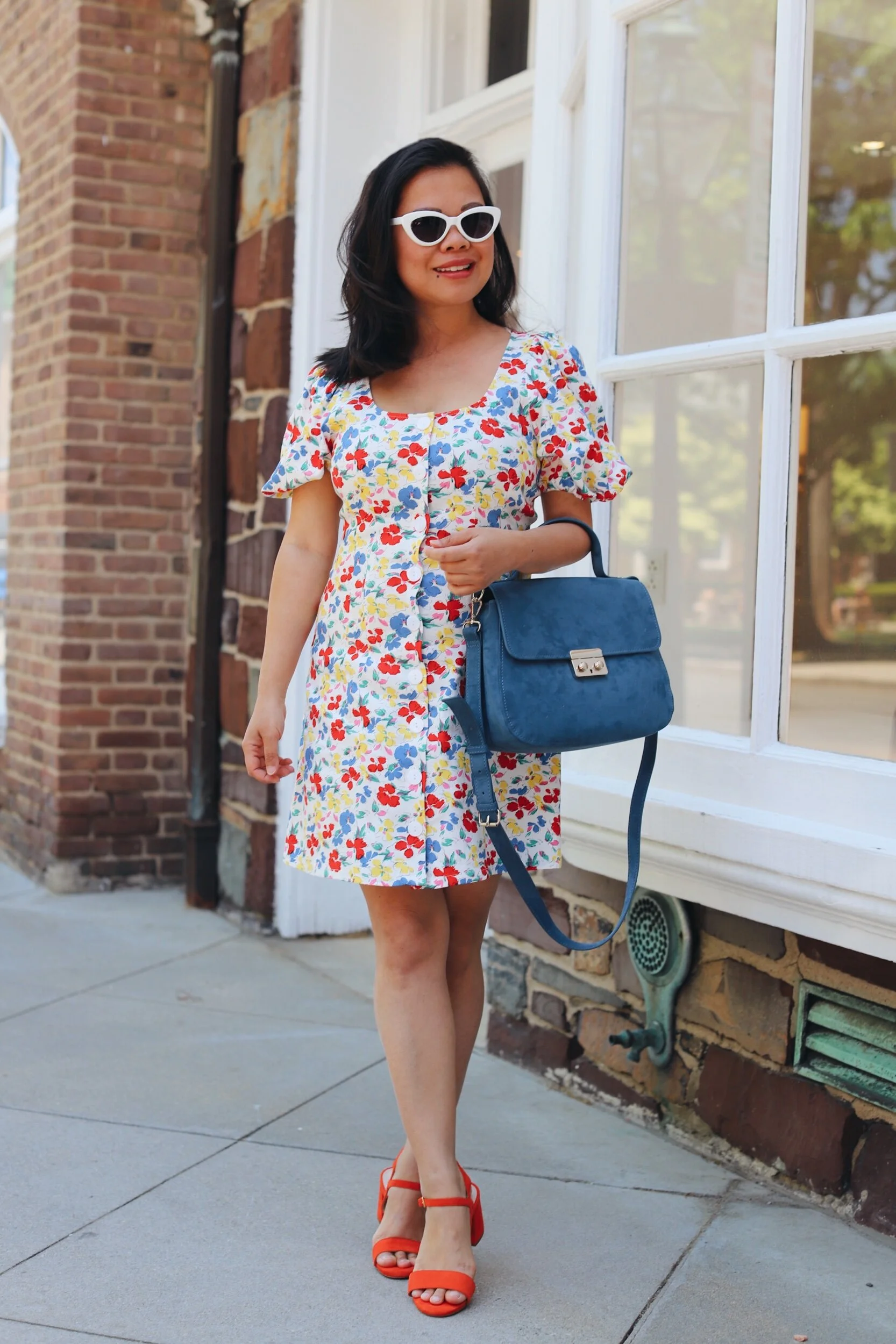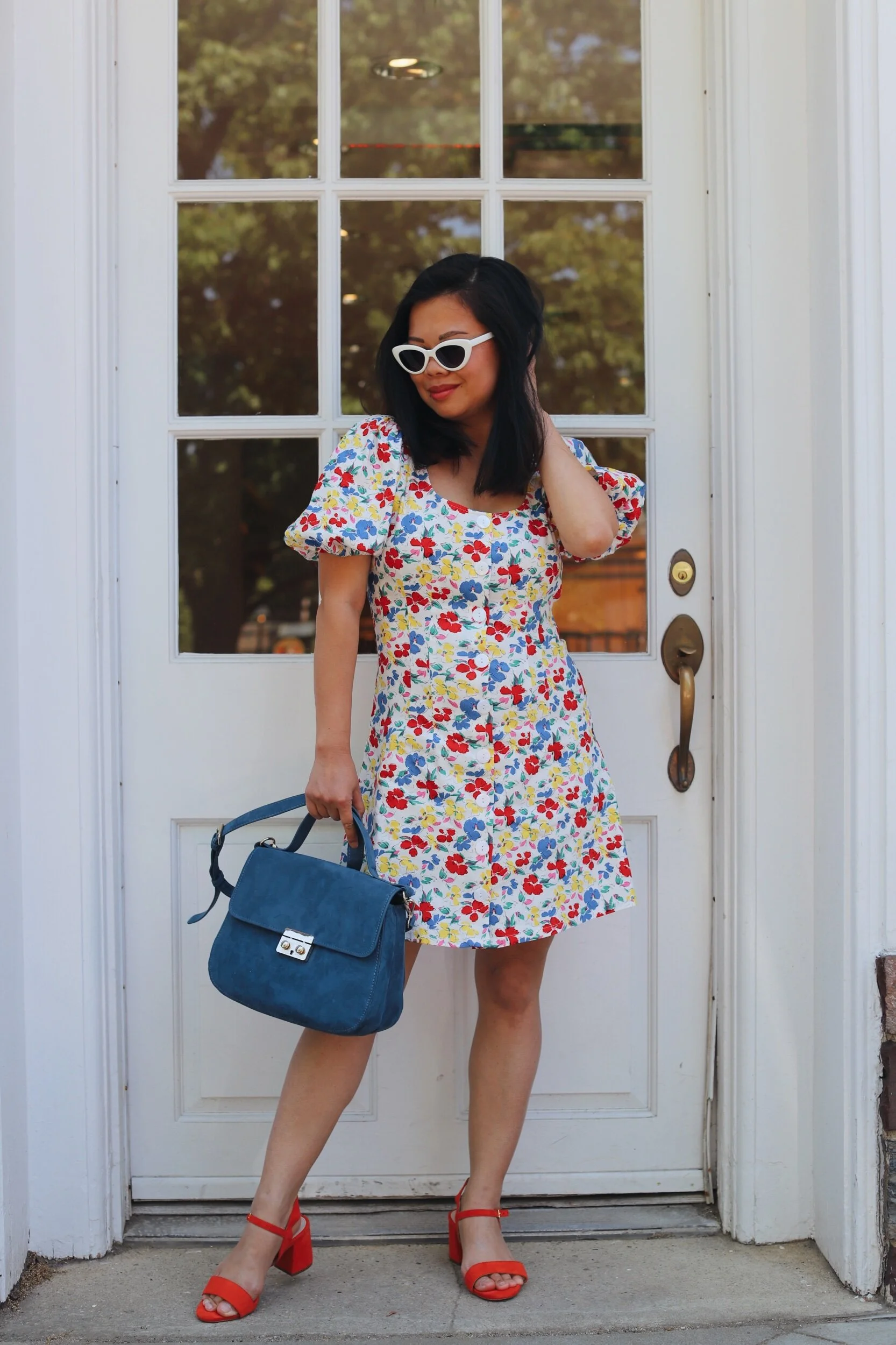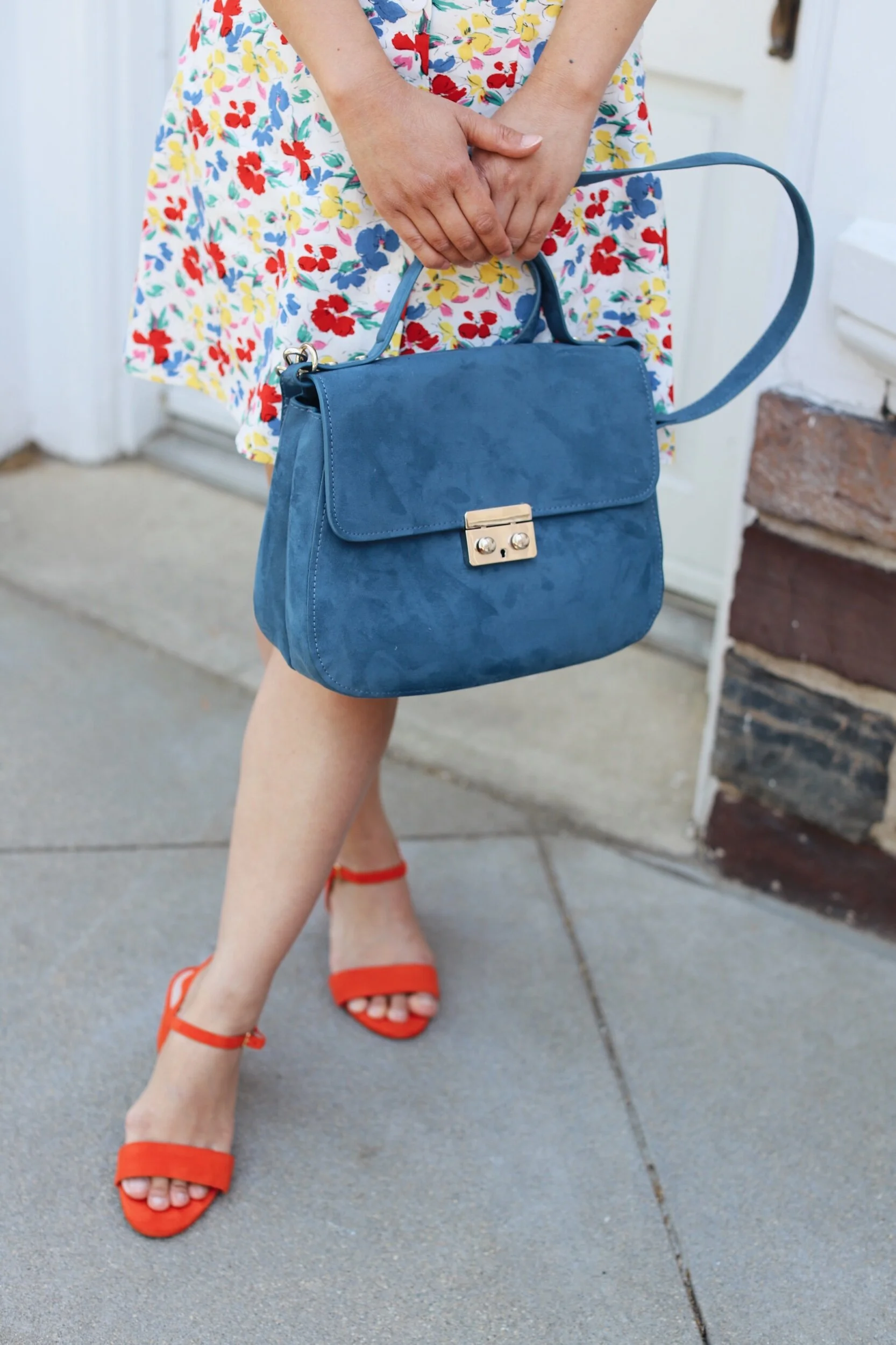 Wearing RIXO x Target dress, Zara bag (old), Cole Haan block heel sandal