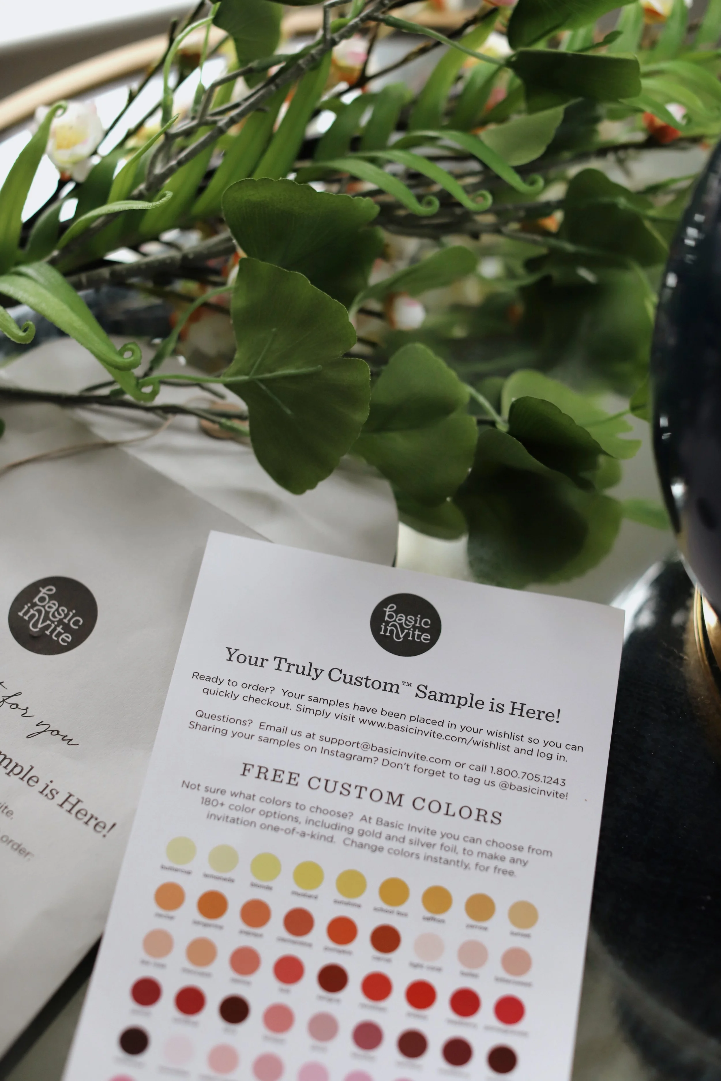 Right now Basic Invite is offering 15% off with coupon code: 15FF51. And don’t forget, Basic Invite is one of the few websites that allows you to order a printed sample of your actual item so you can see exactly how it will print as well as the paper quality before you ever have to place your final order!