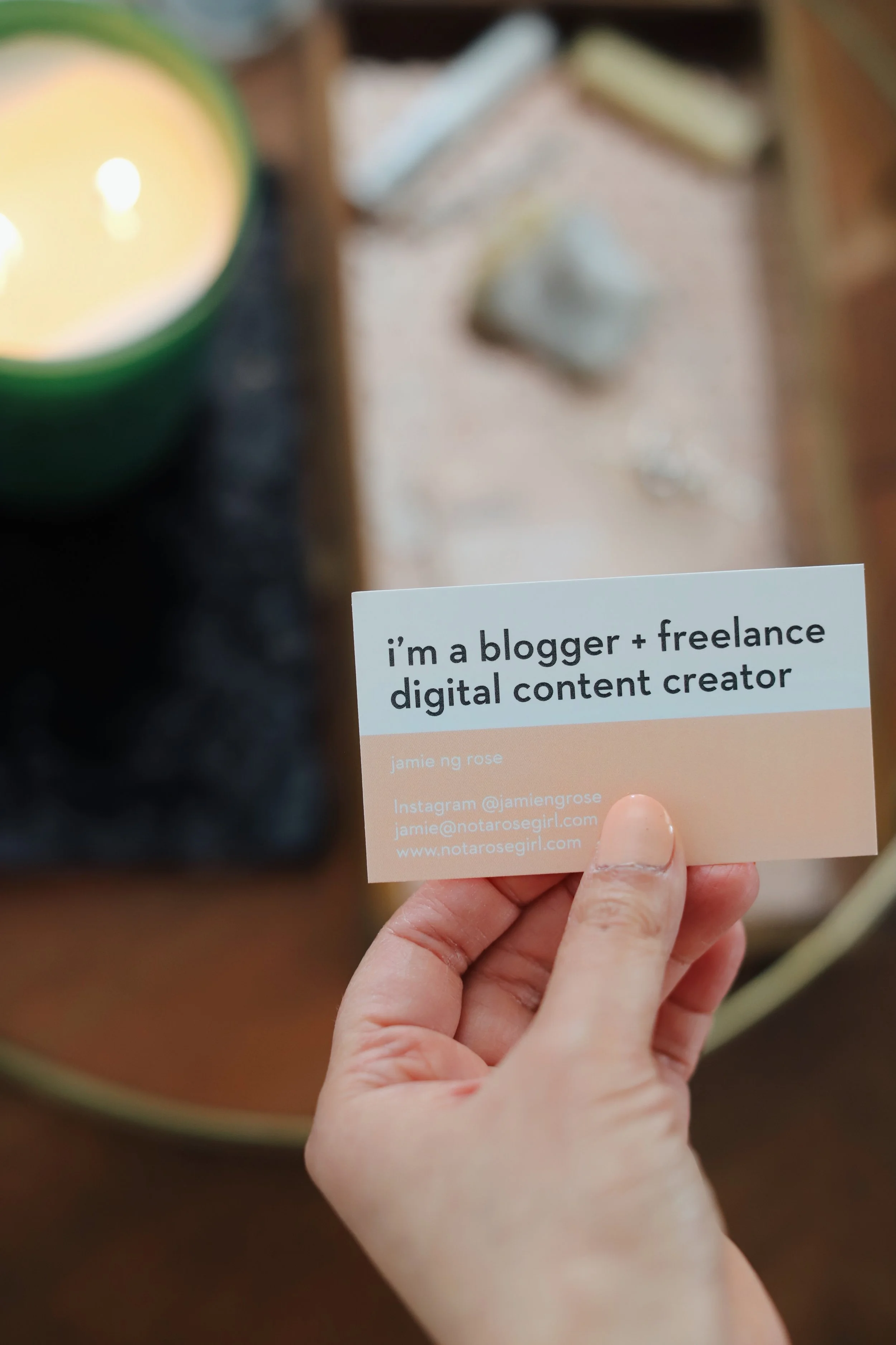 I selected the Modern Colorblock Business Card, a minimalist yet friendly design utilizing a bold sans serif type and two-toned background. With all the clutter in mom life, both mentally and physically, I knew I wanted a clean, straightforward design to represent me (and my services) in a nutshell. Basic Invite offers over 550 business card designs, including ones that let you upload a photo, clear business cards, and foil embossed business cards available in gold, silver and rose gold. (I also really like the Marbled Paper Foil Business Card, this quirky Social Media Business Card, and this Fashion Stylist Business Card – these would be so perfect for lifestyle and fashion bloggers!)