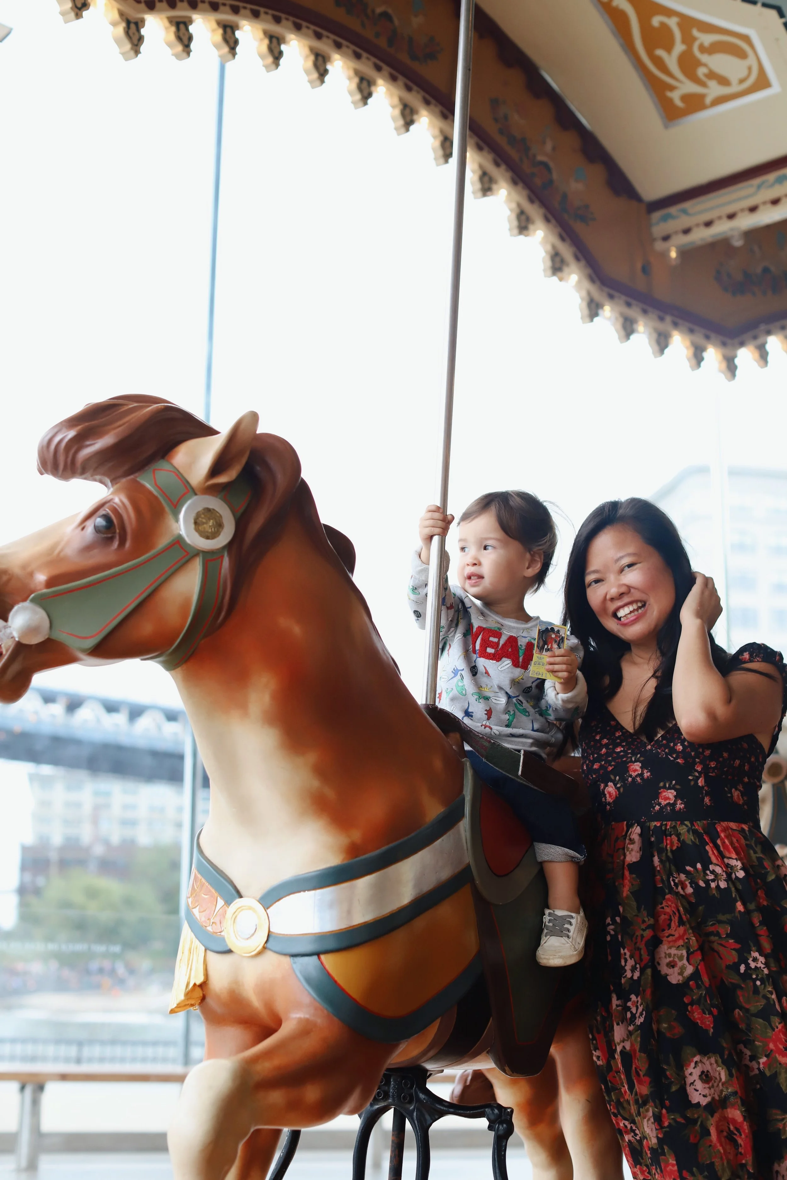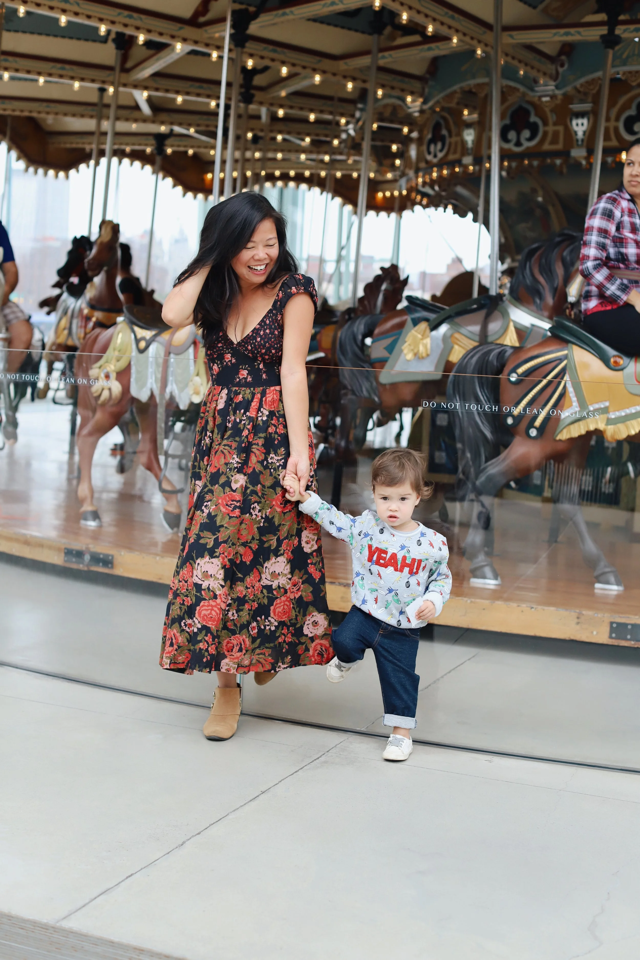 p.s. These gorgeous pics were taken by my girlfriend Caila Quinn on Atticus’s 2nd birthday a few months ago in New York City. We had a playdate with Caila in DUMBO, took a few spins on Jane’s Carousel, and played at the playground. Scroll down to see pics with Atticus’s first crush!